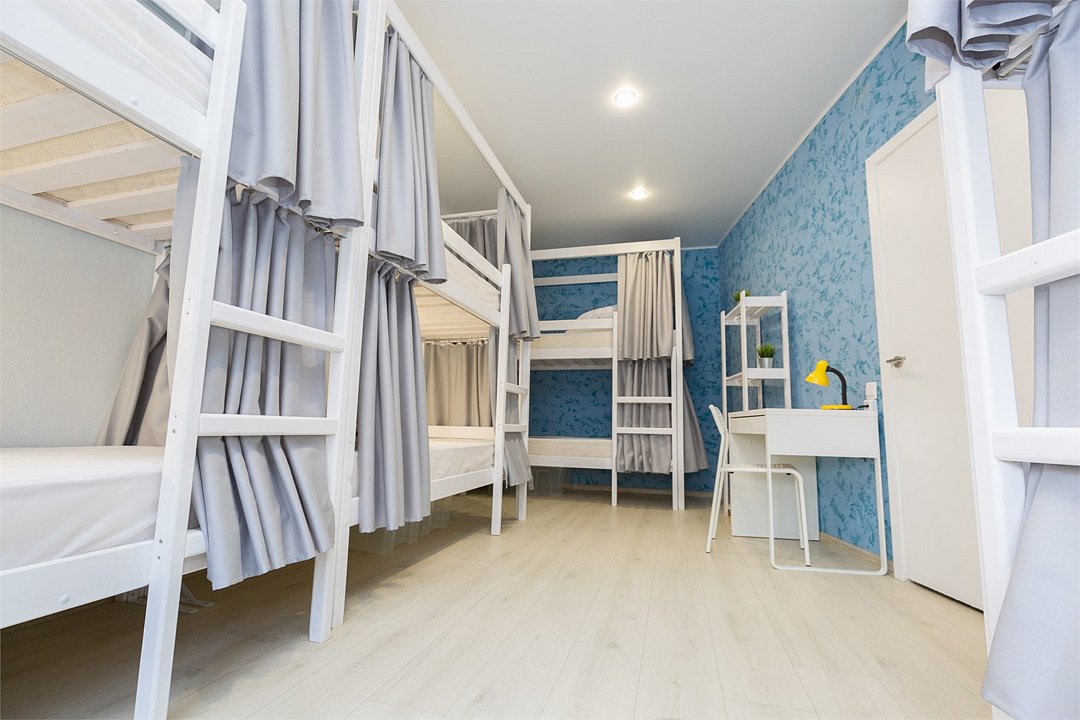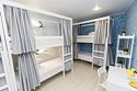 Добро пожаловать в наш просторный и уютный общий многоместный номер! Номер оборудован несколькими двухъярусными кроватями, каждая из которых оснащена индивидуальным освещением и розеткой. Постельное белье и полотенца предоставляются бесплатно. Также есть бесплатный Wi-Fi. Общая ванная комната на этаже оснащена душевой кабиной, феном и комплектом туалетных принадлежностей.Мужской многоместный номер