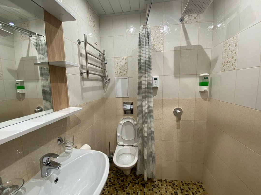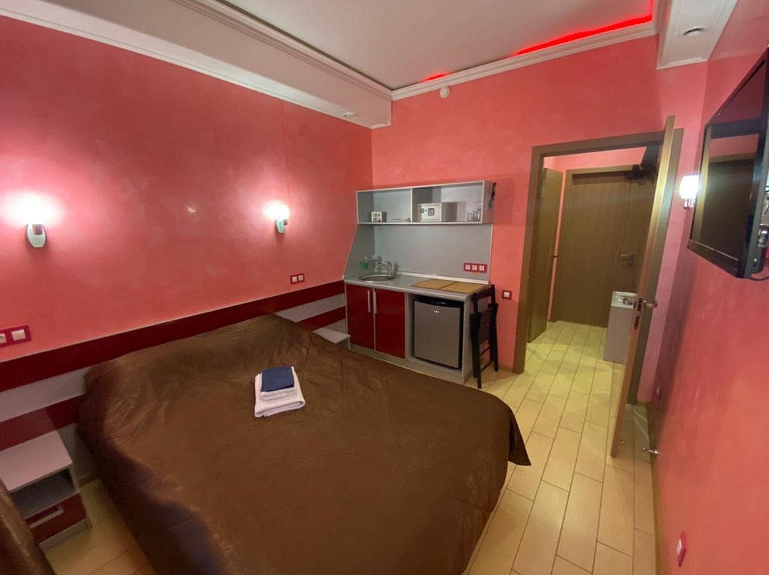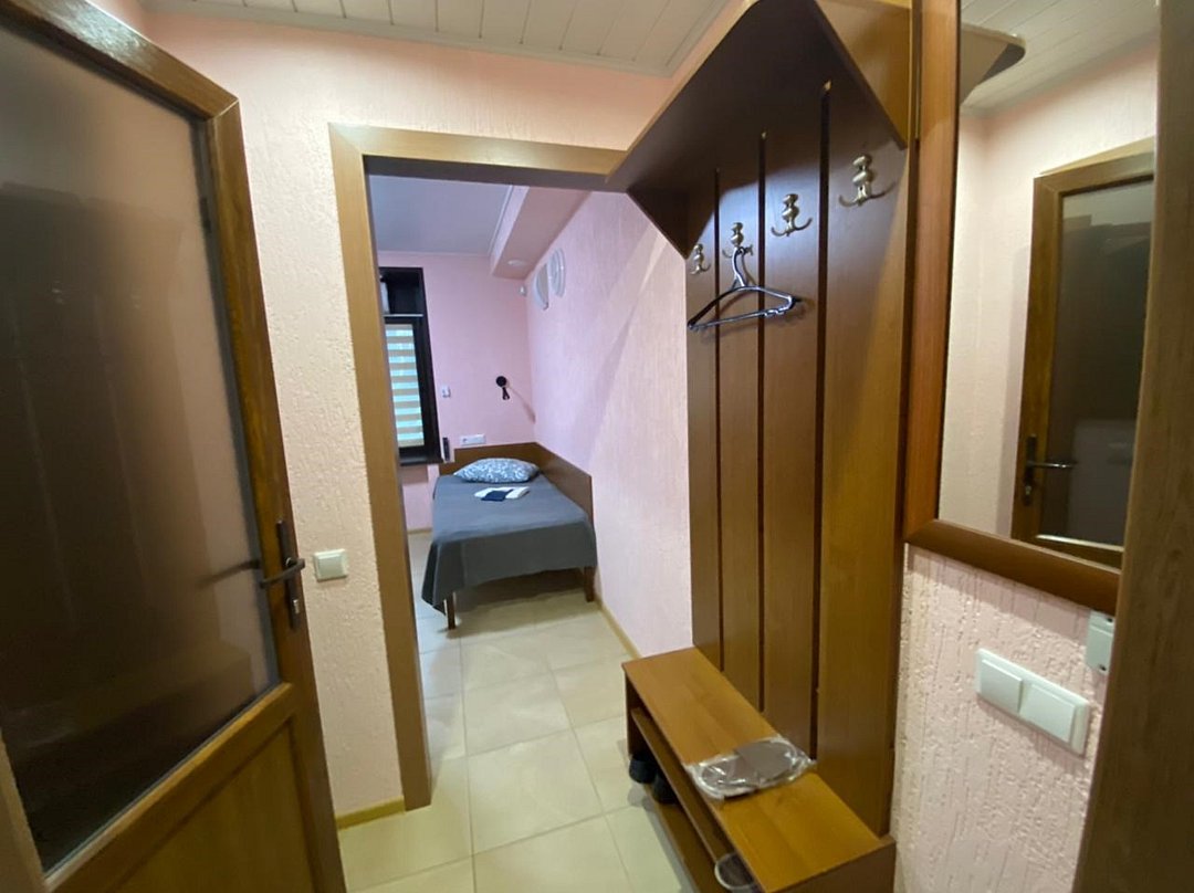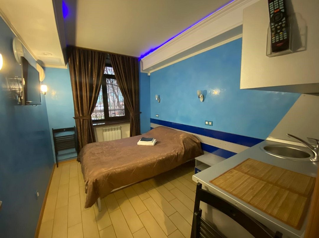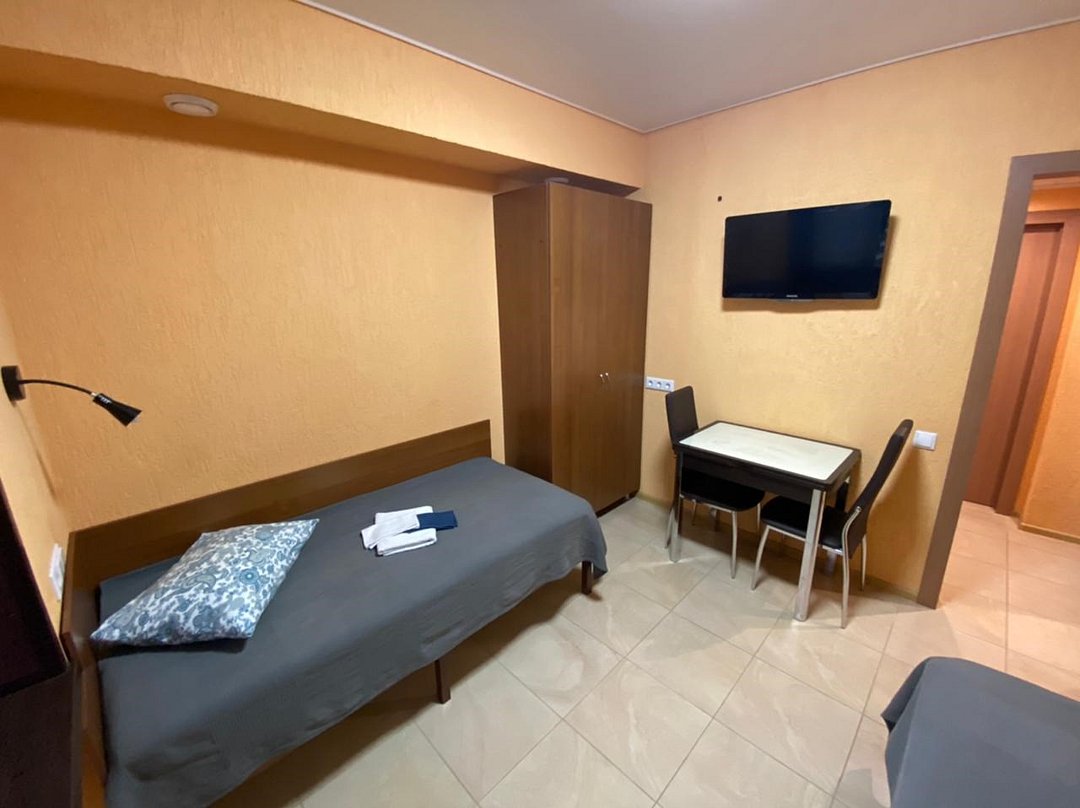 Бюджетный 2-х местный номер с одной двухспальной кроватью 1,4 м, с кухонным уголком и посудой. Душ, туалет в номере. Кондиционер, теплый пол, ТВ с кабельными каналами, wi-fi , тапочки, ежедневная смена полотенец,Услуги и удобства