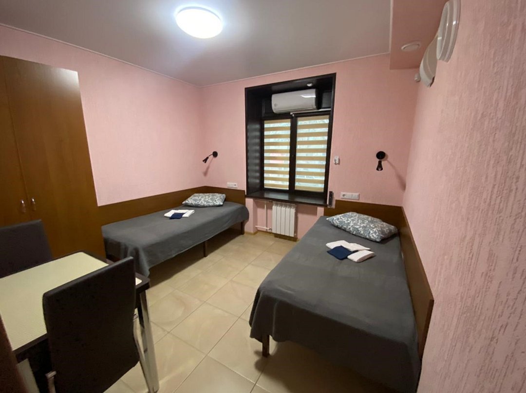 Бюджетный 2-х местный номер с двумя раздельными кроватями, стол, стулья, плательный шкаф, душ, туалет в номере. Кондиционер, теплый пол, WI-FI , ТВ с кабельными каналами, кровати 0,9 м с ортопедическими матрацами, ежедневная смена полотенец ( для душа, лица и ног), смена постельного белья- 1 раз в неделюУслуги и удобства
