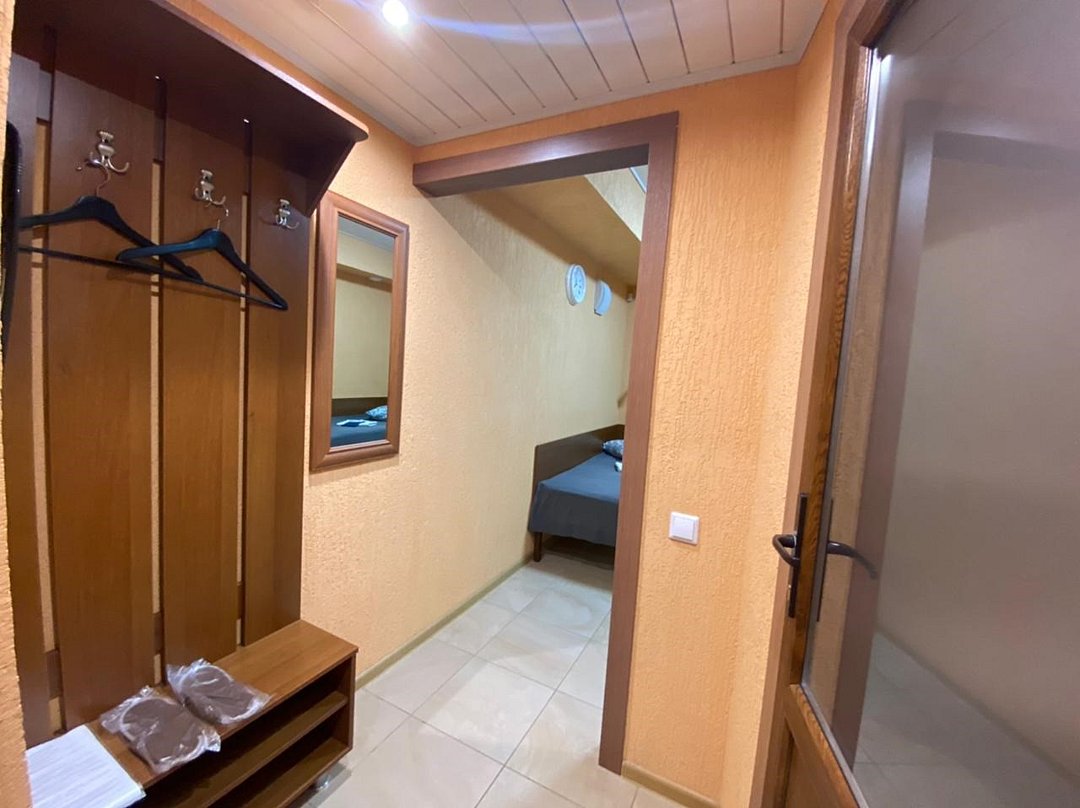 4-х местный номер для дружной семьи , площадью 15 м., в номере 2-х спальная кровать и 2 полуторки, стол, стулья, ТВ, кондиционер, комплект посуды, индивидуальные бра , одноразовые тапочки. Ежедневная влажная уборка, ежедневная смена полотенец. Окна во двор дома. Общий душ и туалет на 2 номера. В холле расположены холодильник и СВЧ печь.Услуги и удобства