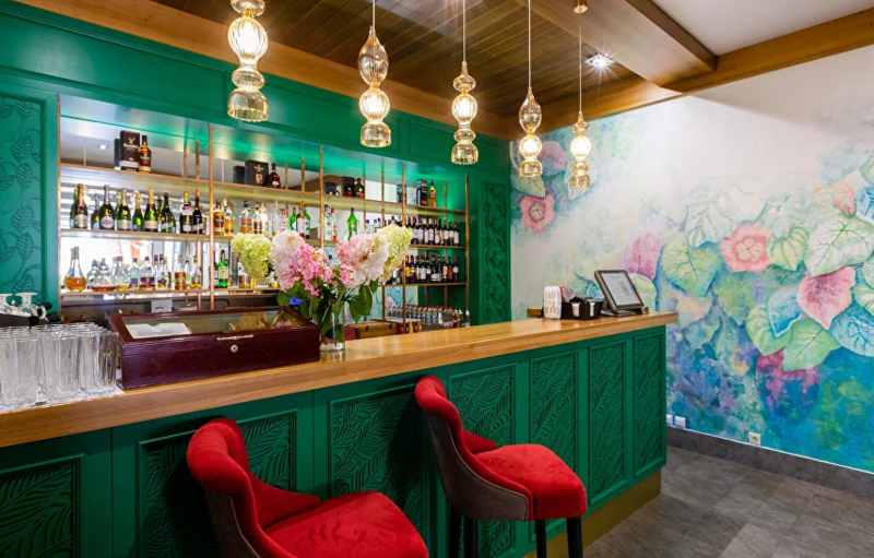 Меню умело сочетает в себе кулинарные традиции различных кухонь мира: здесь и всеми любимые восточные и кавказские блюда, и популярные европейские позиции, и авторские блюда от шеф-повара. Уха с тремя видами рыб, лосось шеф-посола, пикантный том-ям, ароматные хачапури, сочные чебуреки и домашнее мороженое. С мангала подают с пылу с жару сочные шашлыки, а из собственной пекарни приносят ароматный хлеб.