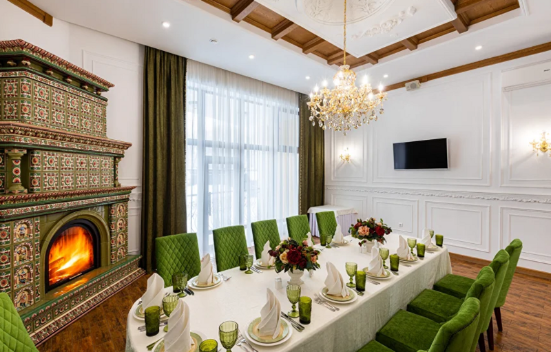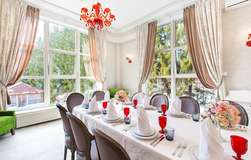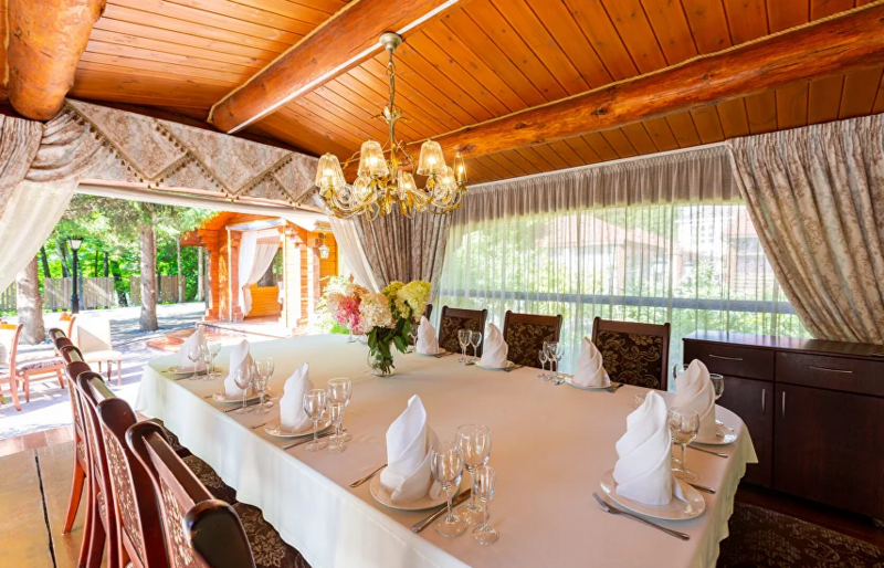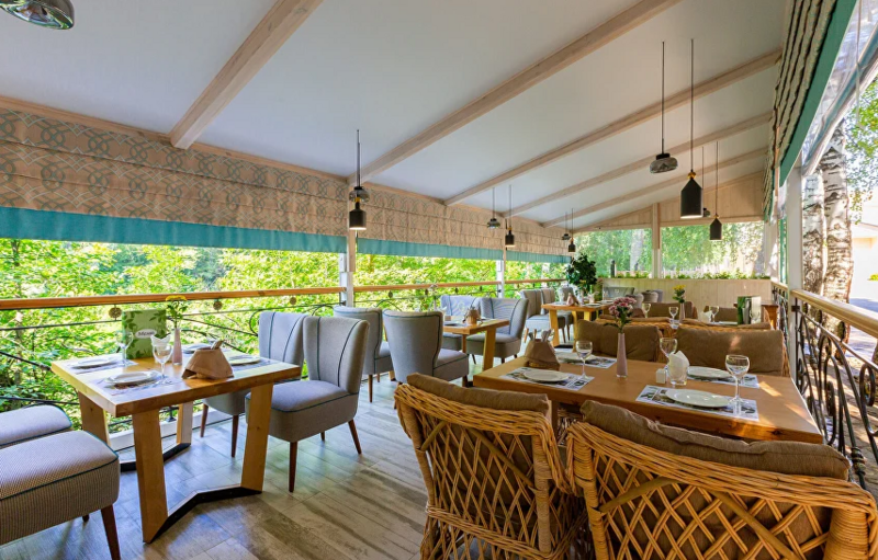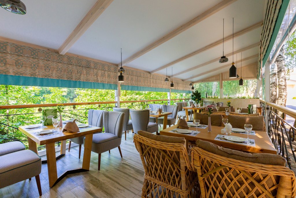 В распоряжении гостей настоящая русская баня на территории комплекса, парковка, уникальная кухня. В меню ресторана — симбиоз европейской, дачной и кавказской кухни, коллекция мясных деликатесов в исполнении шеф-повара и домашние десерты от нашего кондитера. По выходным в ресторане всегда играет живая музыка. Для юных гостей предусмотрено детское меню. На свежем воздухе для них оборудована игровая площадка.