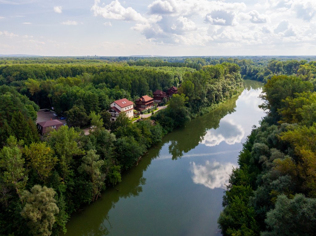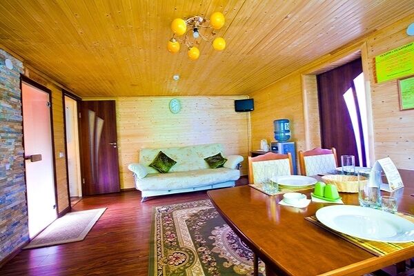 На территории комплекса гостей ждет чистый воздух соснового бора, зеленые лужайки и обширная лесопарковая зона. Комплекс состоит из уютного эко-отеля на 12 номеров, 8 гостевых домов с банями и большого ресторанного комплекса с банкетными залами и летней террасой. В номерах эко-отеля - изысканный интерьер, ТВ, холодильник, чайник, кондиционер, санузел с душевой кабиной, фен.