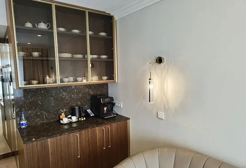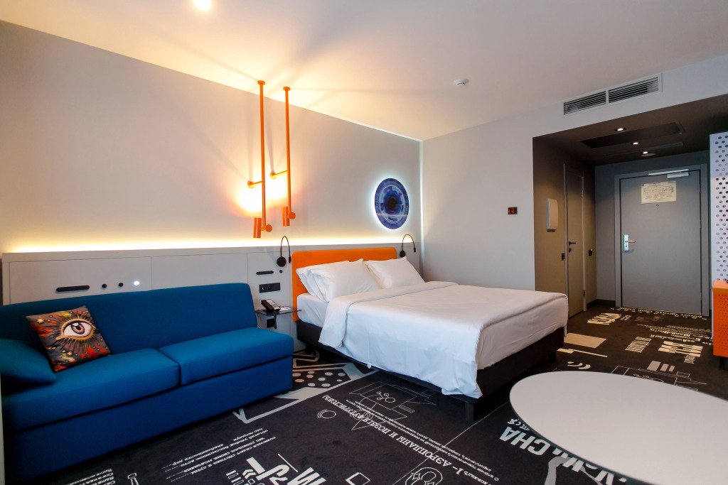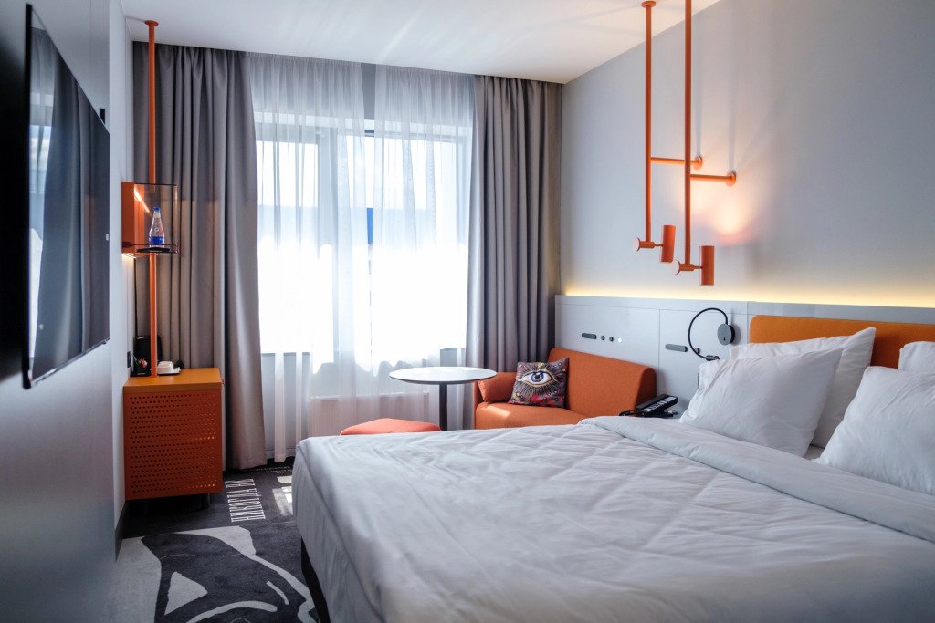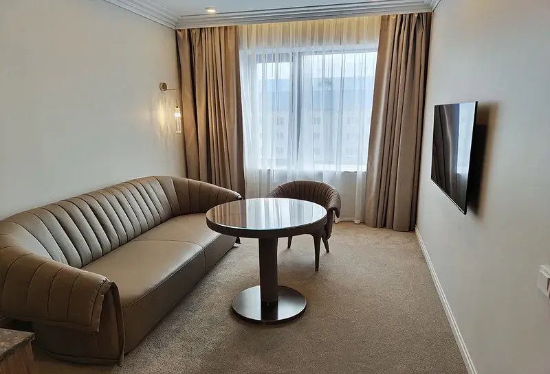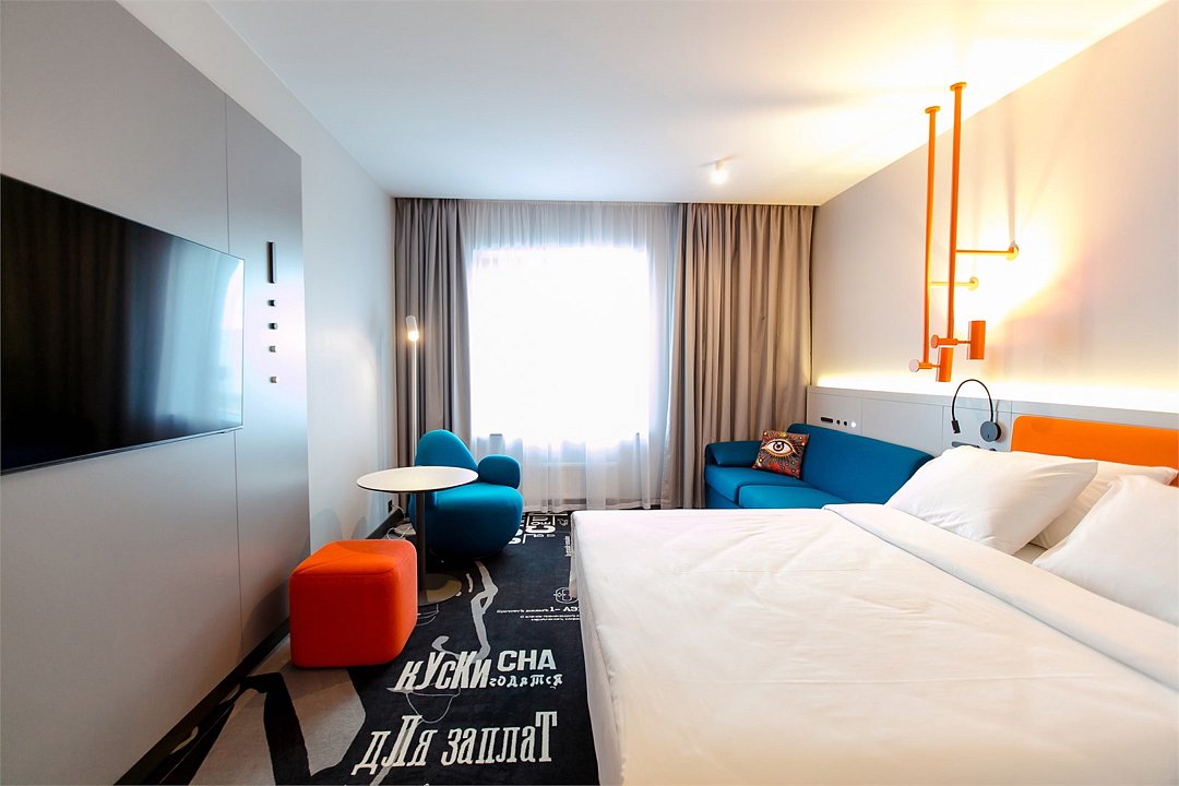 Номер уютно обставлен и оснащён необходимым, чтобы отдохнуть после долгого и насыщенного дня. Имеются телевизор, мини-бар и халат. Перечисленные услуги есть не во всех номерах.