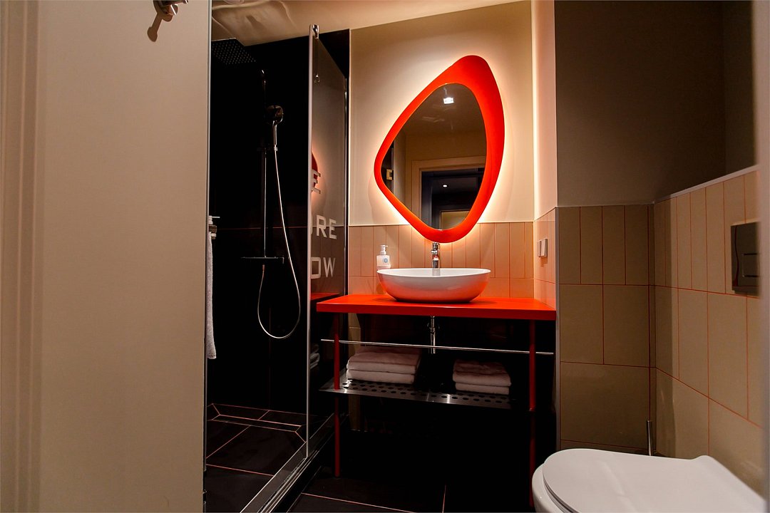 интерактивное телевидение, Wi-Fi, светильник, фен, электронные замки, душевая кабина, банные полотенца, гигиенические средства, косметические средства, двуспальная кровать, вешалки, зеркало, звуконепроницаемые стены и окна, сейф, унитаз, раковина, ковровое покрытие, вид на город, столовые приборы, тумба, туалетный столик, раскладной диван, внутренний телефон, телевизор с плоским экраном, мини-холодильник, номер для некурящих, фанкойл, USB-порт, пуфик, чайная станция, двуспальный раскладной диван-кровать, услуги прачечной (платно), вешалки-плечики, бутилированная вода, мини-бар (платно), мыло, затемняющая штора, зеркало в полный рост, открытый шкаф, дождевой и ручной душ, можно с питомцамиВ гостиничном номере