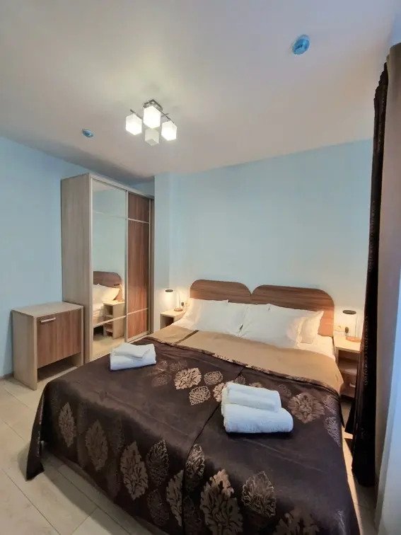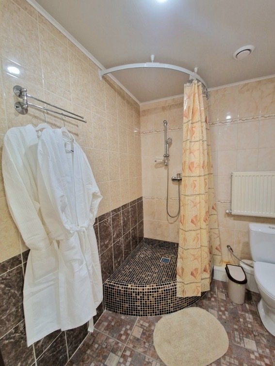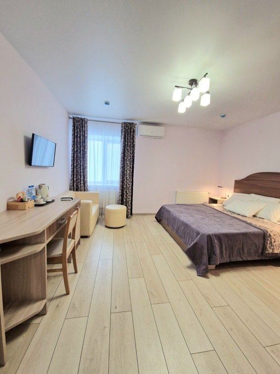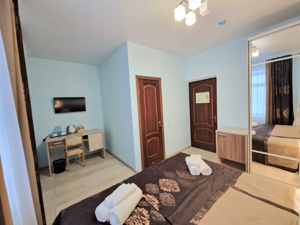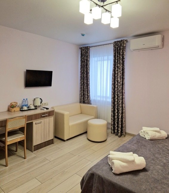 Номер уютно обставлен и оснащён необходимым, чтобы отдохнуть после долгого и насыщенного дня. Имеются телевизор и халат. Перечисленные услуги есть не во всех номерах.