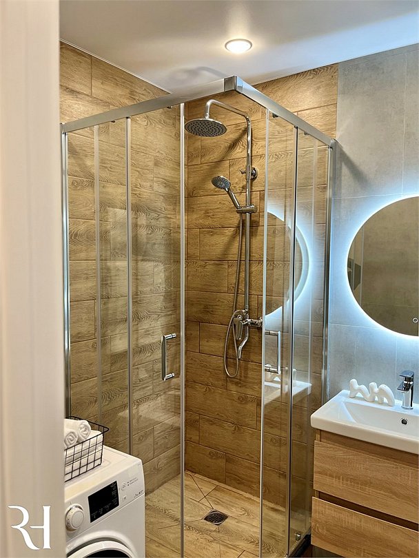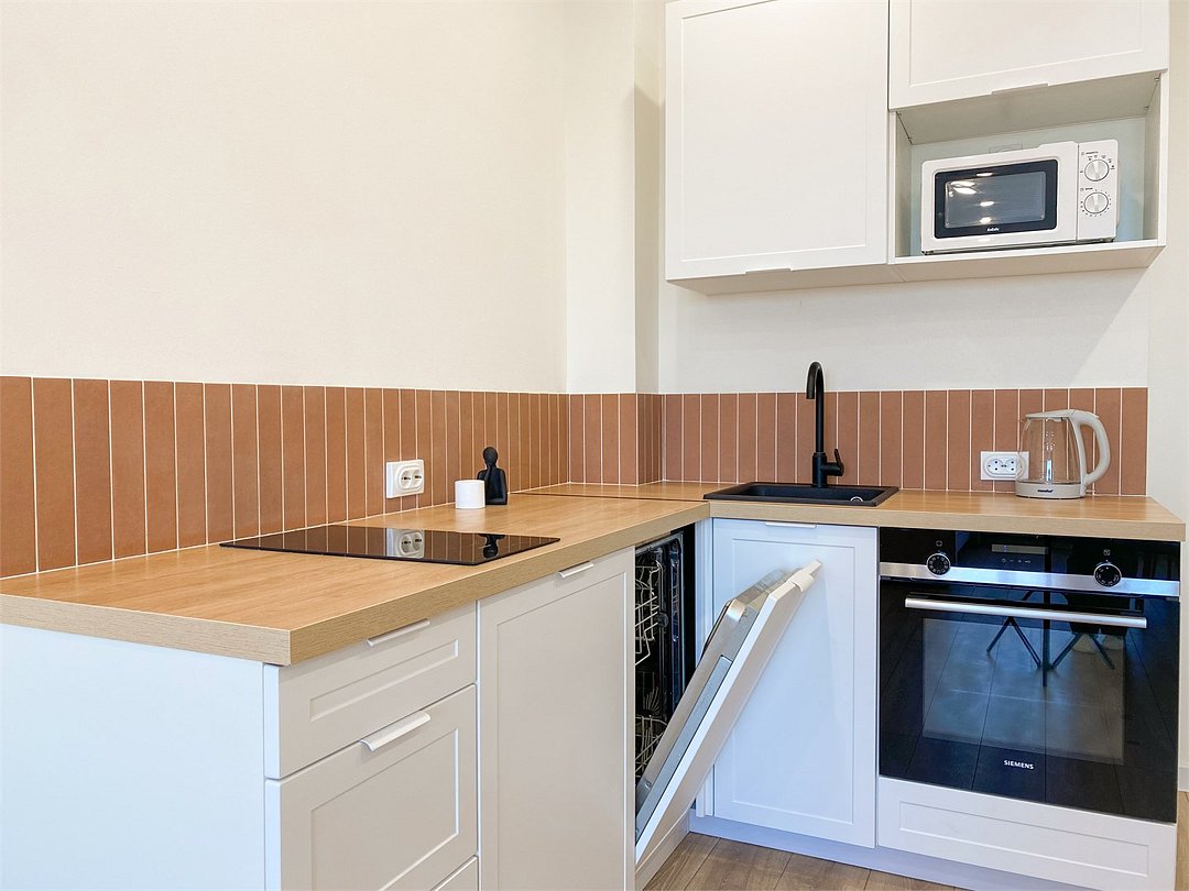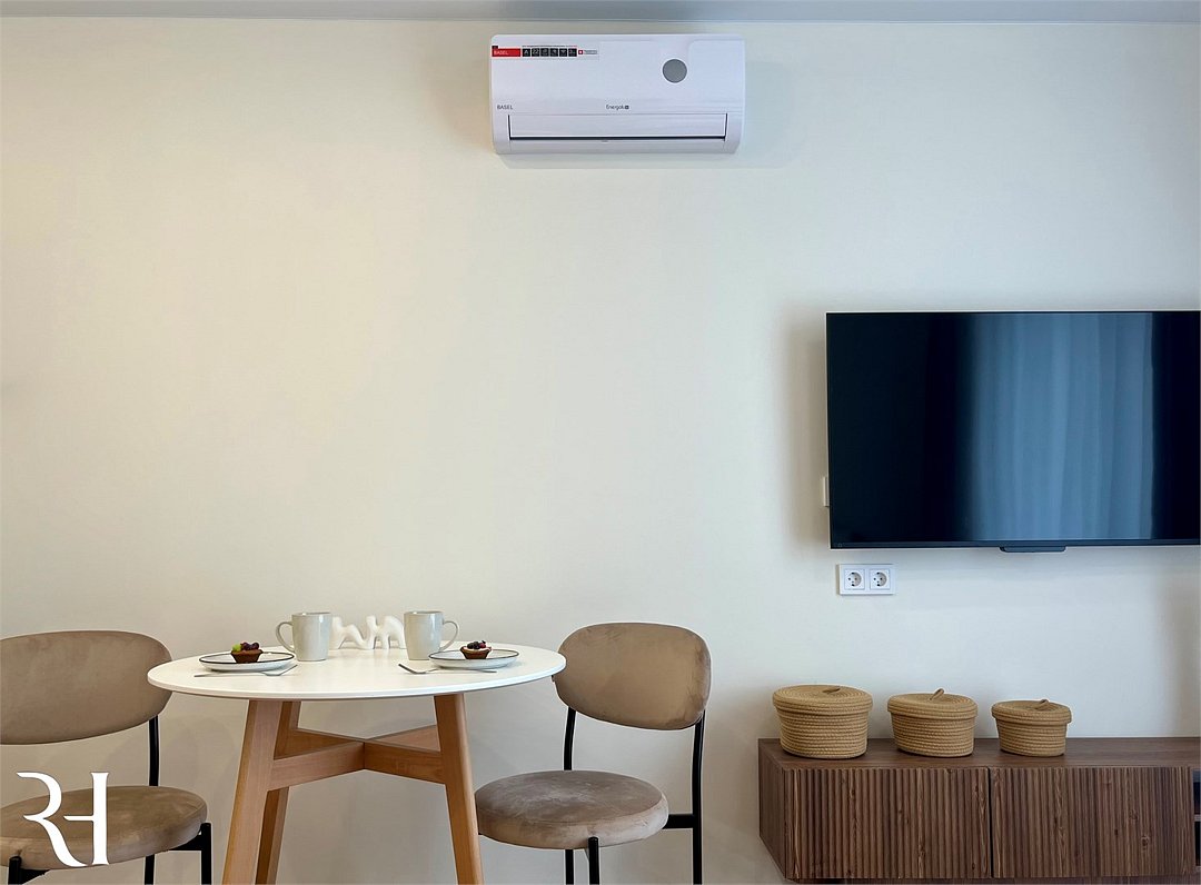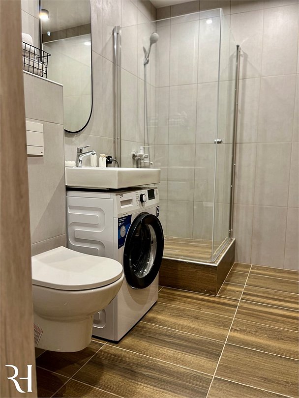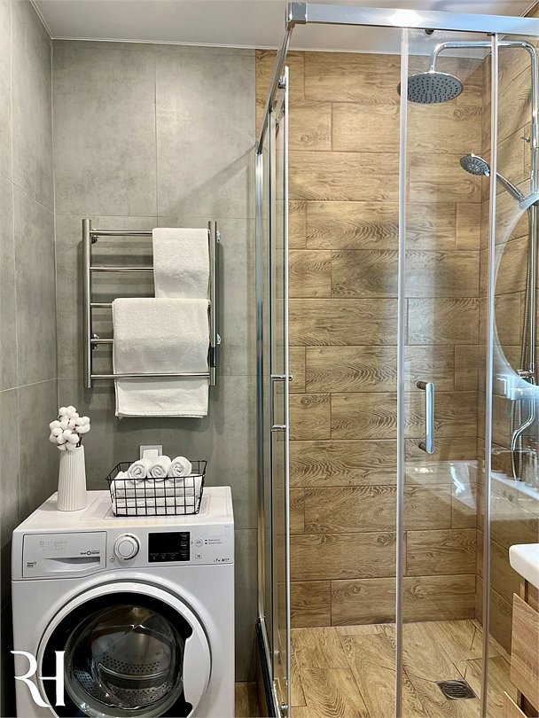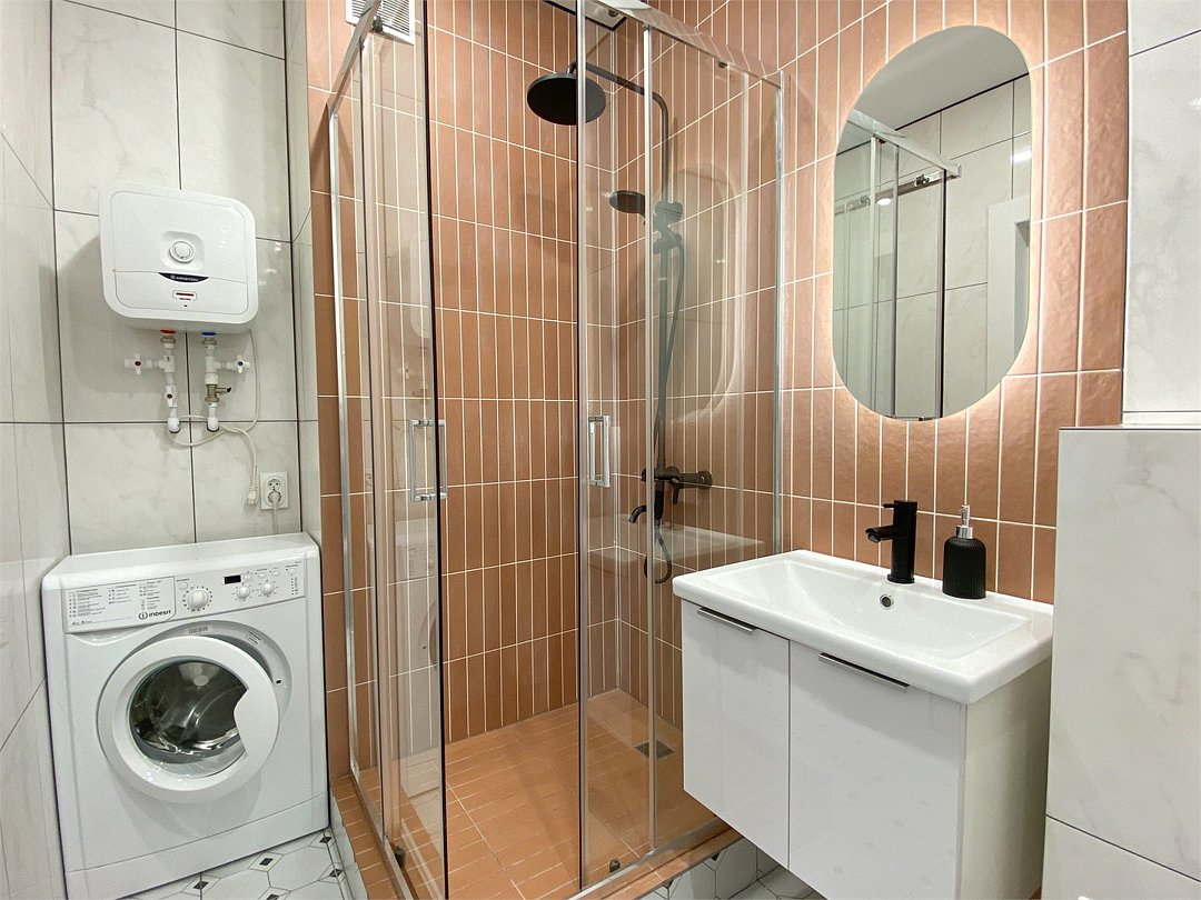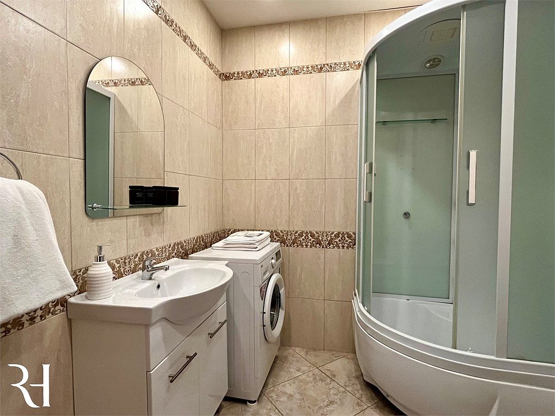 Wi-Fi, холодильник, кондиционер, фен, электронные замки, кофемашина, микроволновая печь, утюг, ванная комната, душевая кабина, водонагреватель, банные полотенца, тапочки, двуспальная кровать, гладильная доска, стулья, шкаф для одежды, вешалки, обеденный стол, зеркало, мебельный гарнитур, кухня, чайный набор, набор посуды, стиральная машина, чайник, унитаз, раковина, отопление, вид на город, вид во двор, кухонная посуда, столовые приборы, стул, туалетные средства, сушилка для белья, телевизор с плоским экраном, рабочий стол, духовка, набор для приготовления чая и кофе, вешалки-плечики, мылоВ апартаментах
