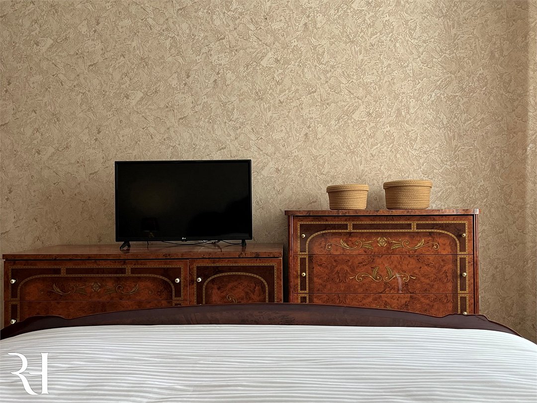 Wi-Fi, холодильник, кондиционер, фен, электронные замки, микроволновая печь, утюг, ванна, водонагреватель, банные полотенца, тапочки, гигиенические средства, косметические средства, балкон, двуспальная кровать, гладильная доска, диван, стулья, шкаф для одежды, письменный стол, обеденный стол, зеркало, комод, мебельный гарнитур, кухня, чайный набор, набор посуды, стиральная машина, чайник, отопление, вид во двор, стаканы, столовые приборы, стул, стол, туалет, сушилка для белья, телевизор с плоским экраном, душ на этаже, телевизор со Smart TV, номер для некурящих, духовой шкаф, духовка, вешалки-плечики, мылоВ гостиничном номере