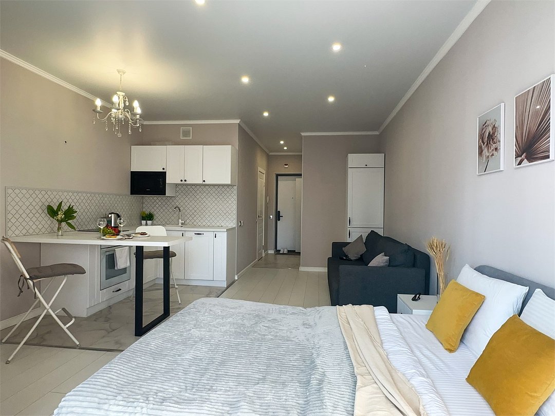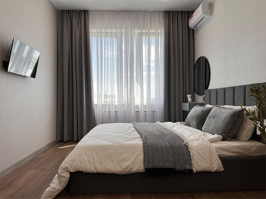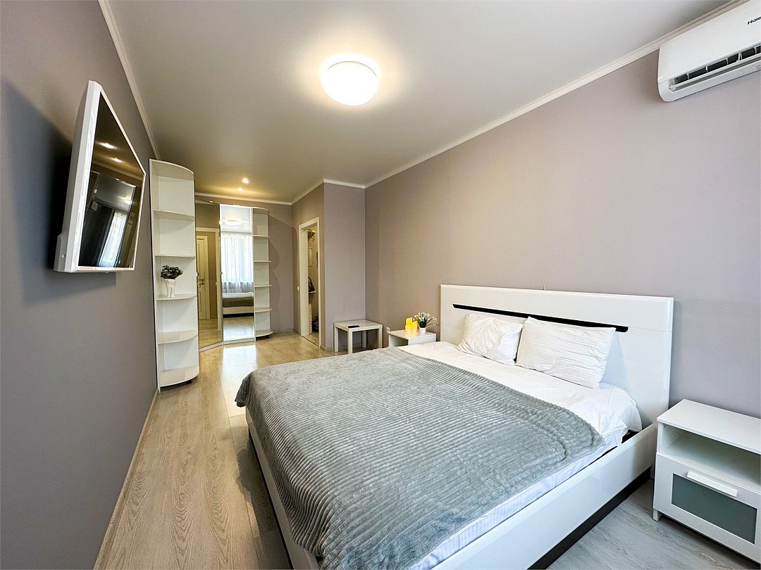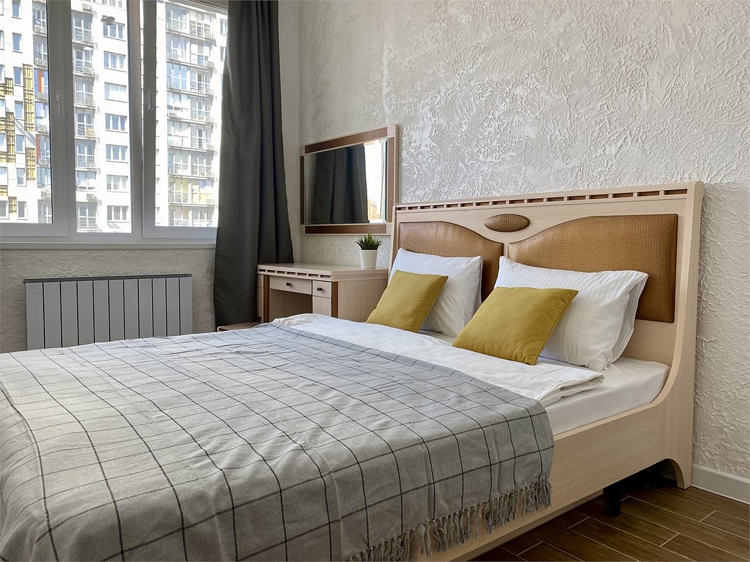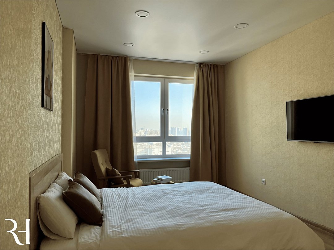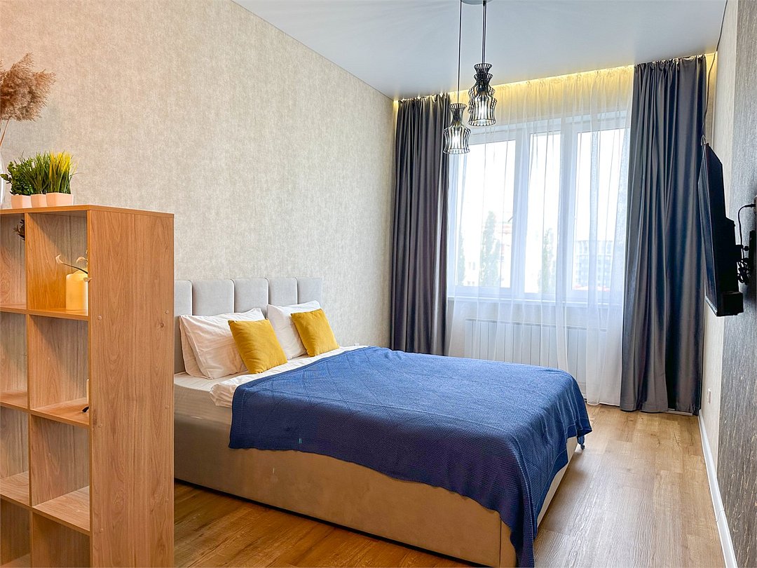 Комфортабельная квартира в элитном жилом комплексе «Планета»; Удобная мебель с безупречно чистым постельным бельем; Спaльных мест 2 Полностью обopудовaнная куxня: cтoловые приборы, набор посуды, микроволновая печь и многое другое, необходимое для приготовления пищи. Высокоскоростной двухзонный WI-FI интернет, ЖК телевизор с множеством каналов по кабельному ТВ; Удобное местоположение и развитая инфраструктура.Услуги и удобства