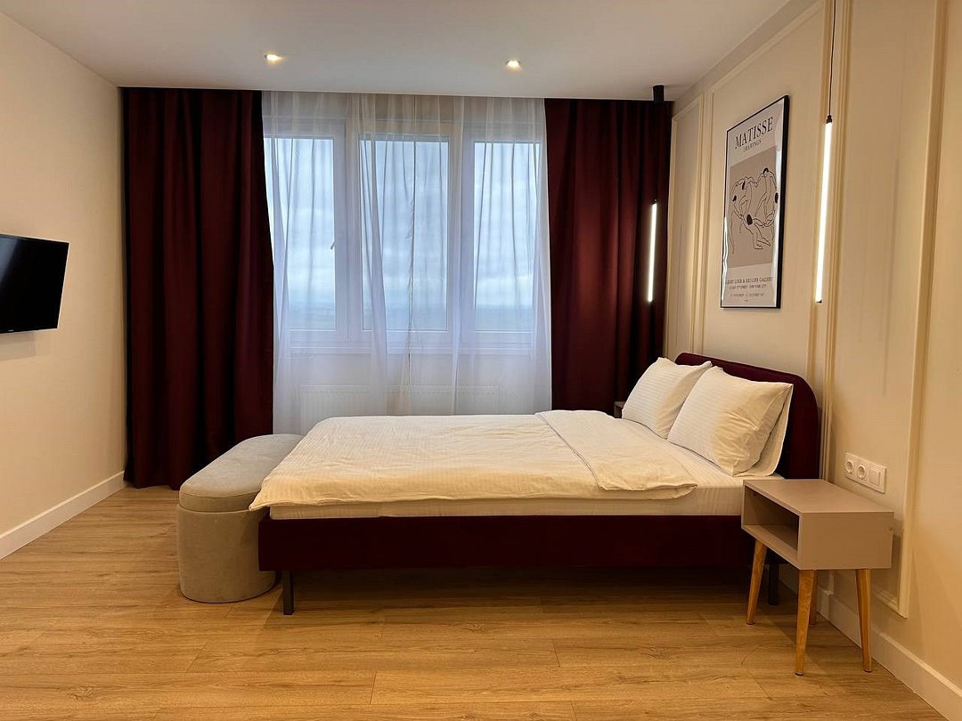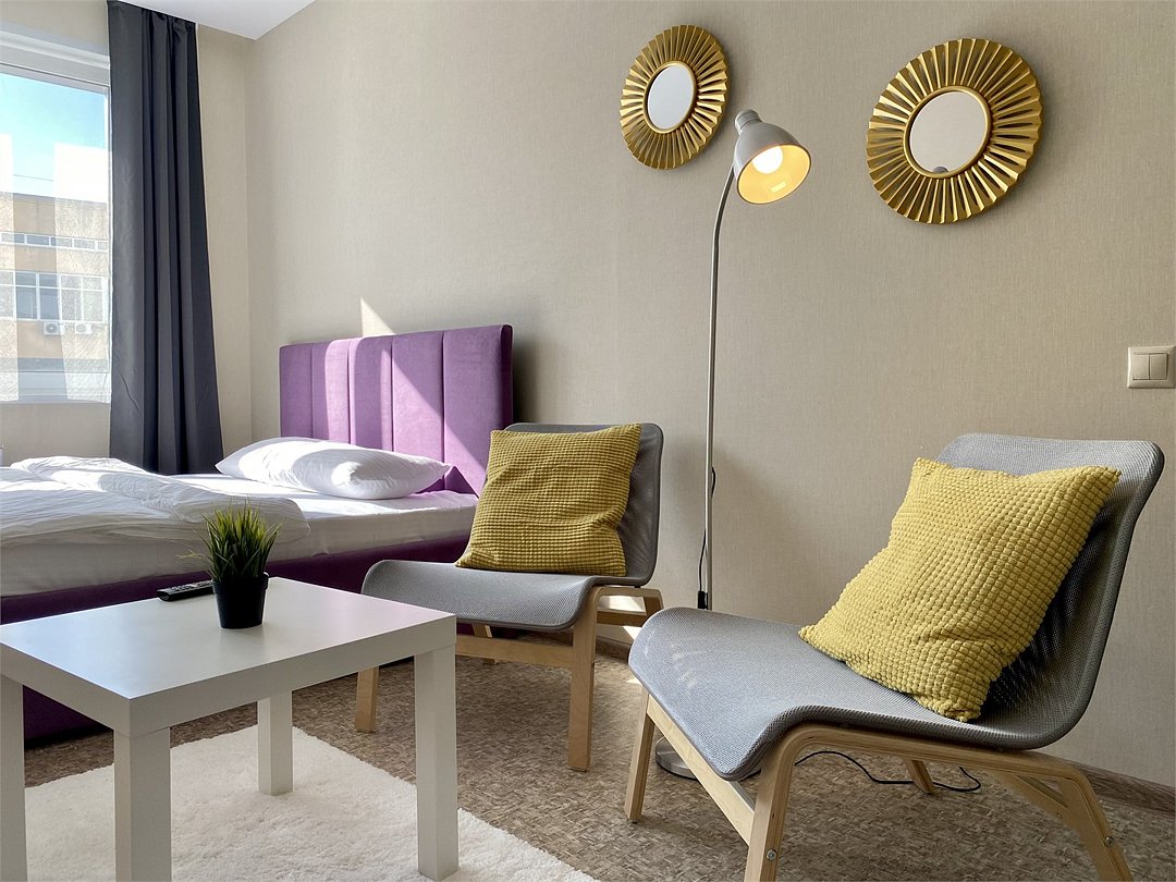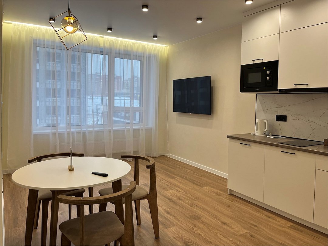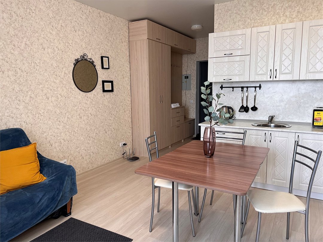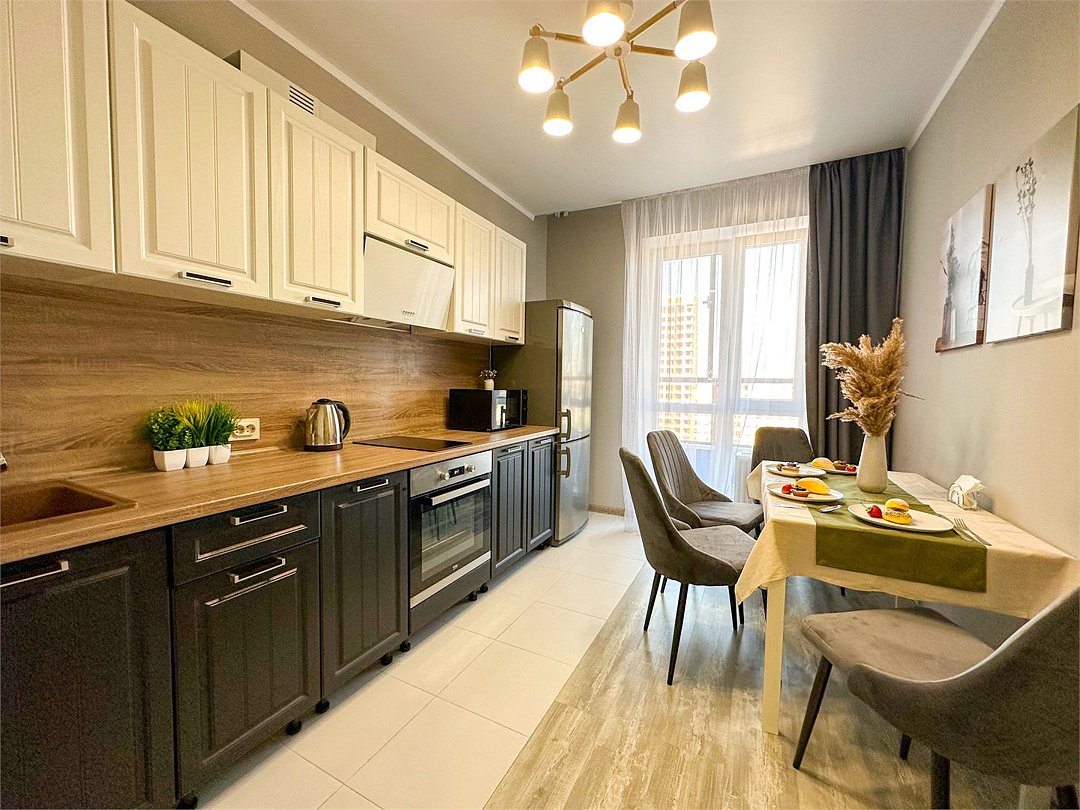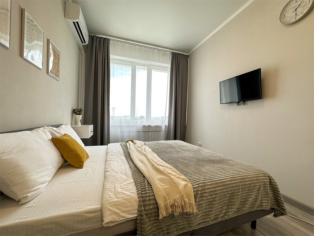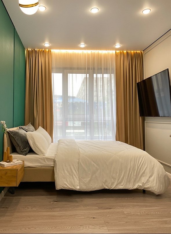 Комфортабельная квартира в элитном жилом комплексе «Планета»; Удобная мебель с безупречно чистым постельным бельем; Спaльных мест 2 Полностью обopудовaнная куxня: cтoловые приборы, набор посуды, микроволновая печь и многое другое, необходимое для приготовления пищи. Высокоскоростной двухзонный WI-FI интернет, ЖК телевизор с множеством каналов по кабельному ТВ; Удобное местоположение и развитая инфраструктура.Услуги и удобства