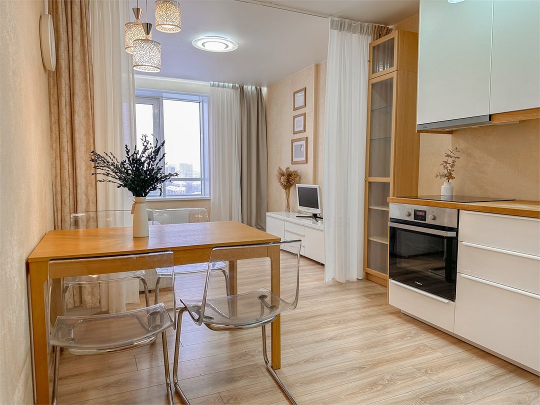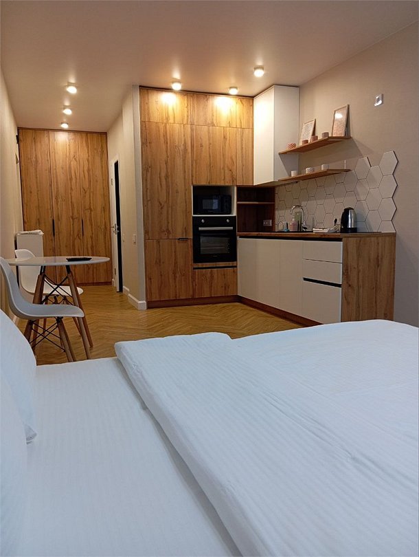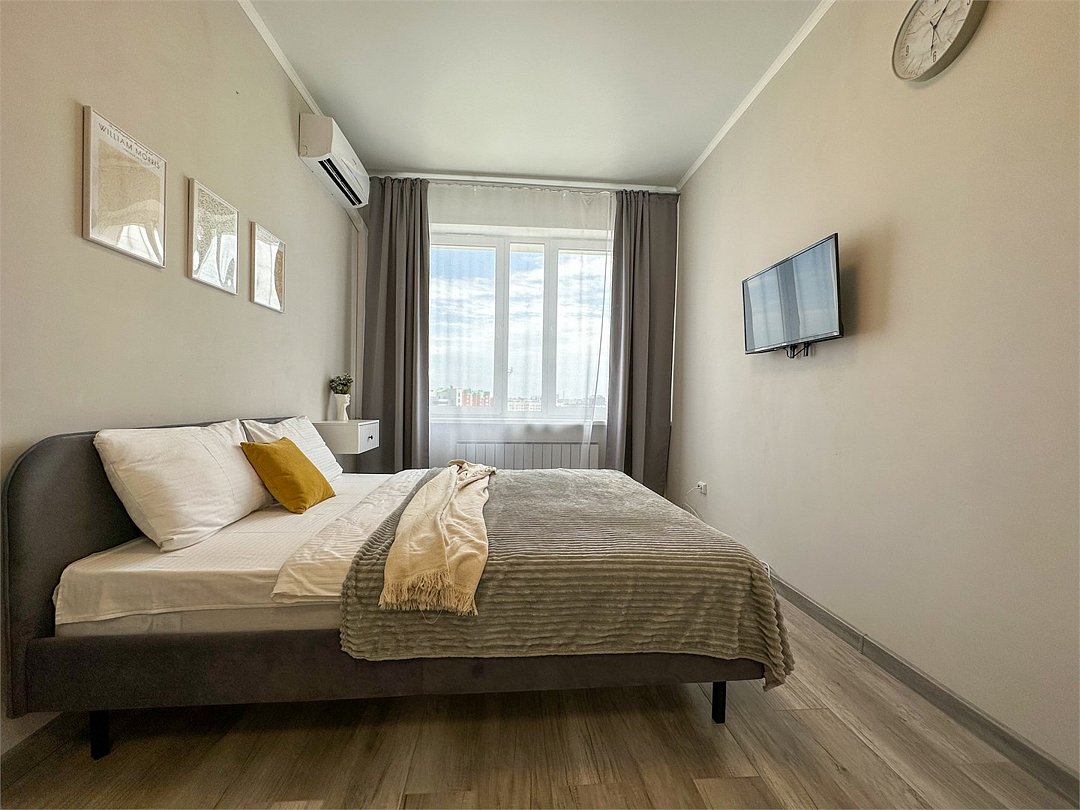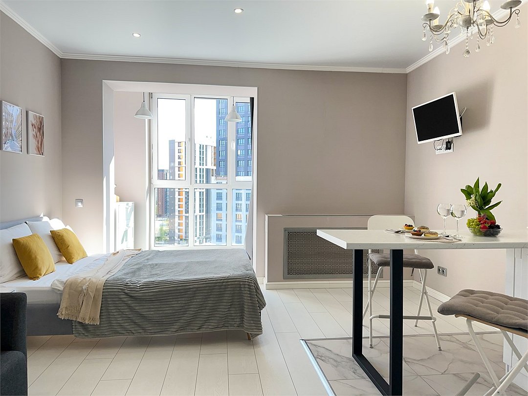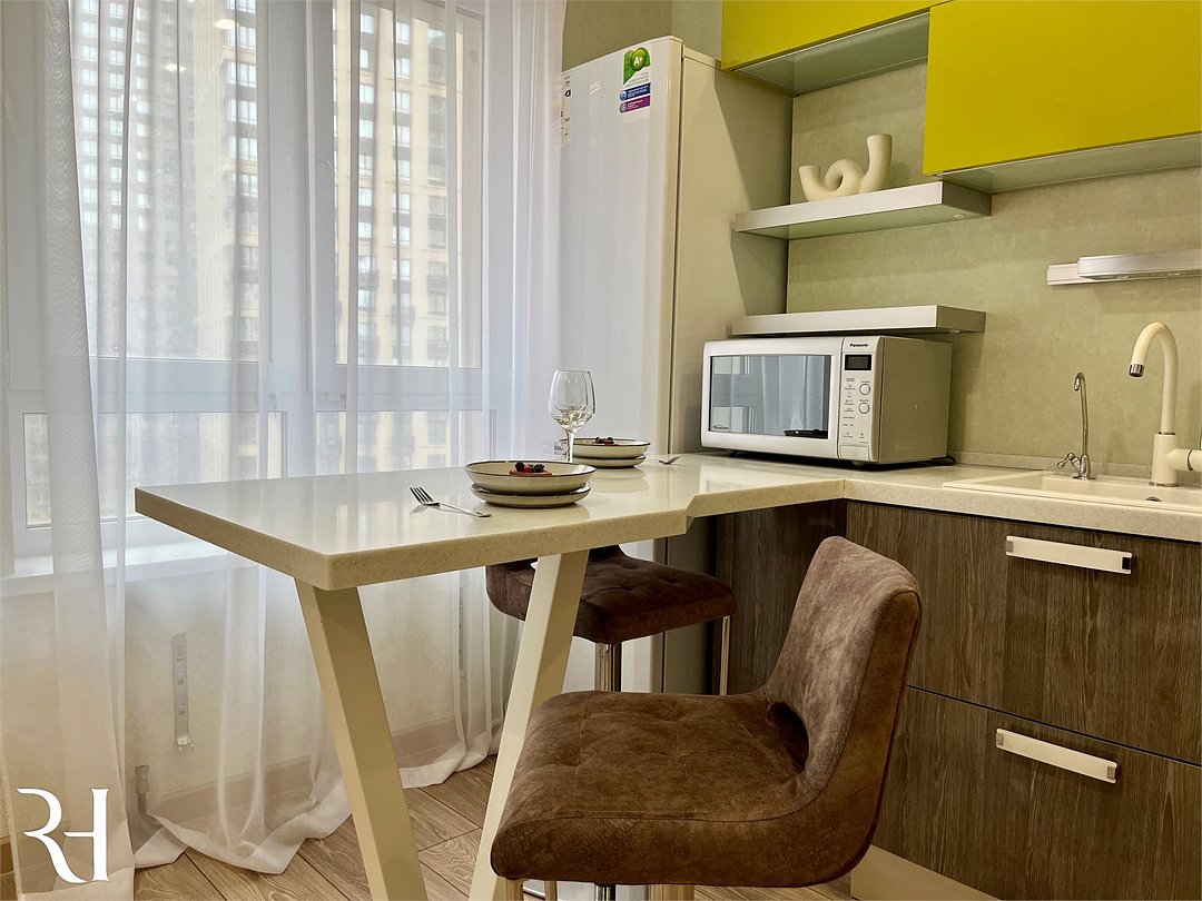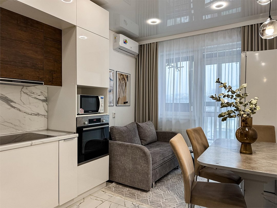 Комфортабельная квартира в элитном жилом комплексе «Планета»; Удобная мебель с безупречно чистым постельным бельем; Спaльных мест 2 Полностью обopудовaнная куxня: cтoловые приборы, набор посуды, микроволновая печь и многое другое, необходимое для приготовления пищи. Высокоскоростной двухзонный WI-FI интернет, ЖК телевизор с множеством каналов по кабельному ТВ; Удобное местоположение и развитая инфраструктура.Услуги и удобства