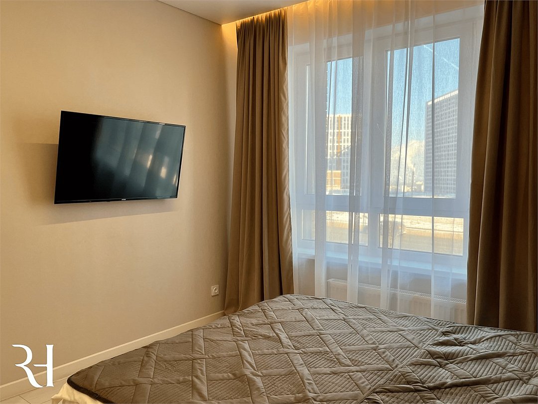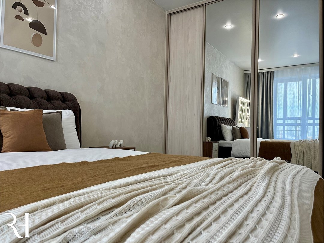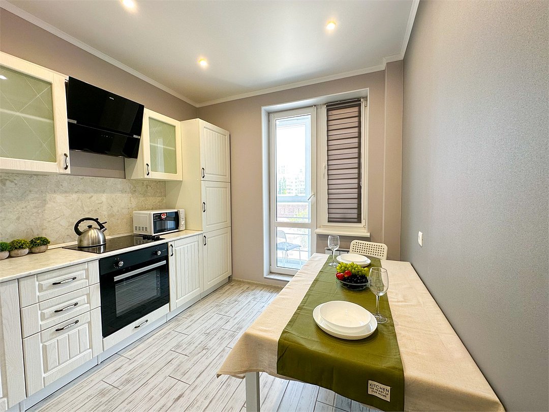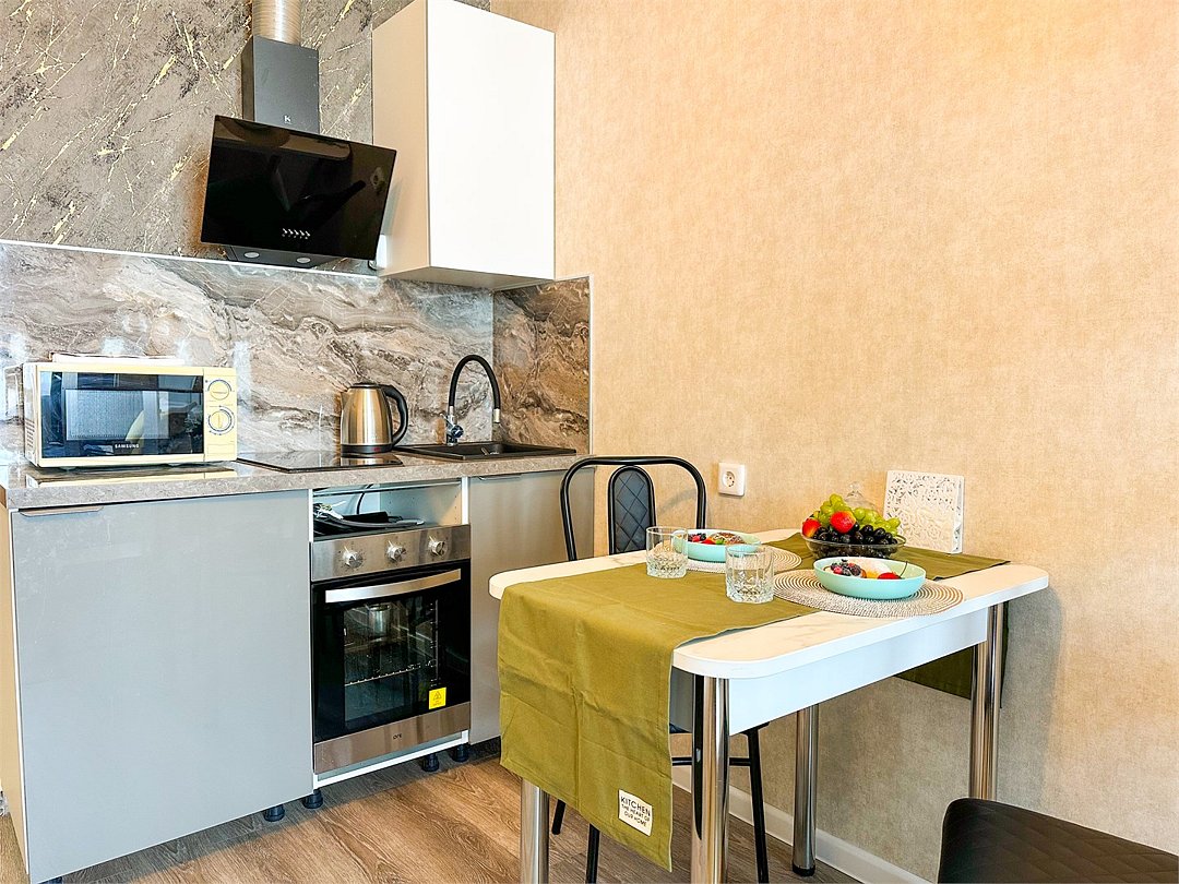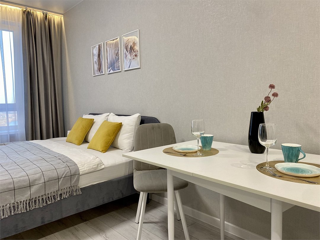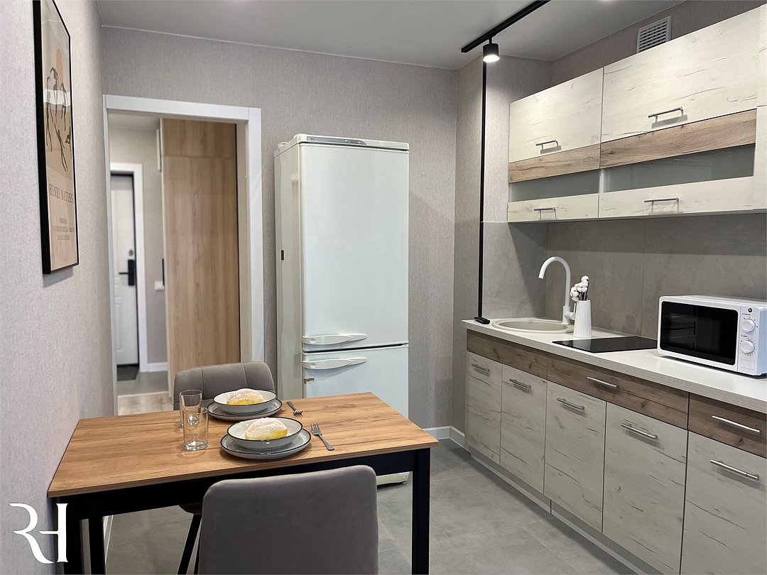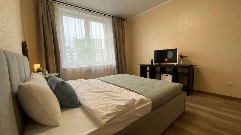 Абсолютно новая комфортабельная квартира в сочетании с уютом и сервисом в новом ЖК Микрорайон Республика Удобная мебель с безупречно чистым постельным бельем; Спaльных мест 2 Полностью обopудовaнная куxня: cтoловые приборы, набор посуды, микроволновая печь и многое другое, необходимое для приготовления пищи; Водонагреватель Высокоскоростной двухзонный WI-FI интернет, ЖК телевизор с множеством каналов по кабельному ТВУслуги и удобства