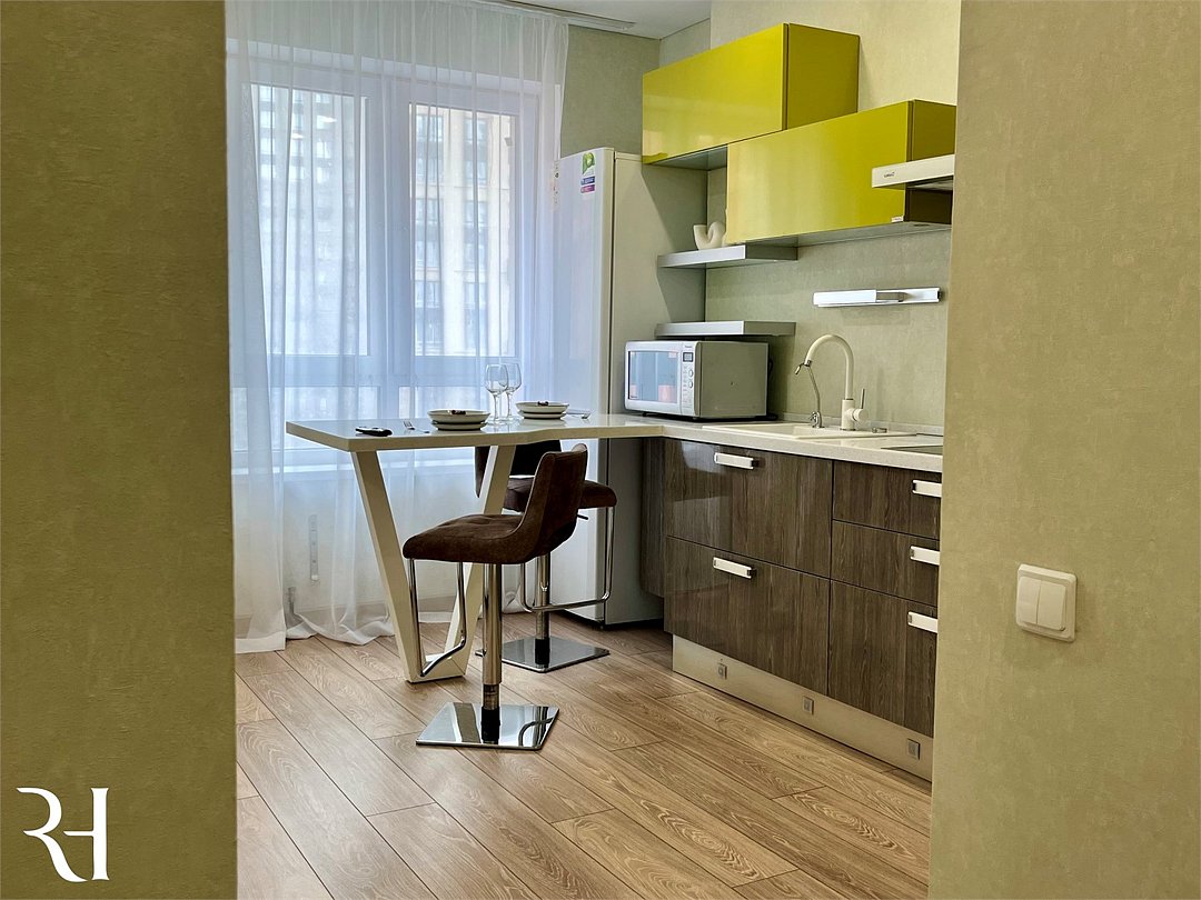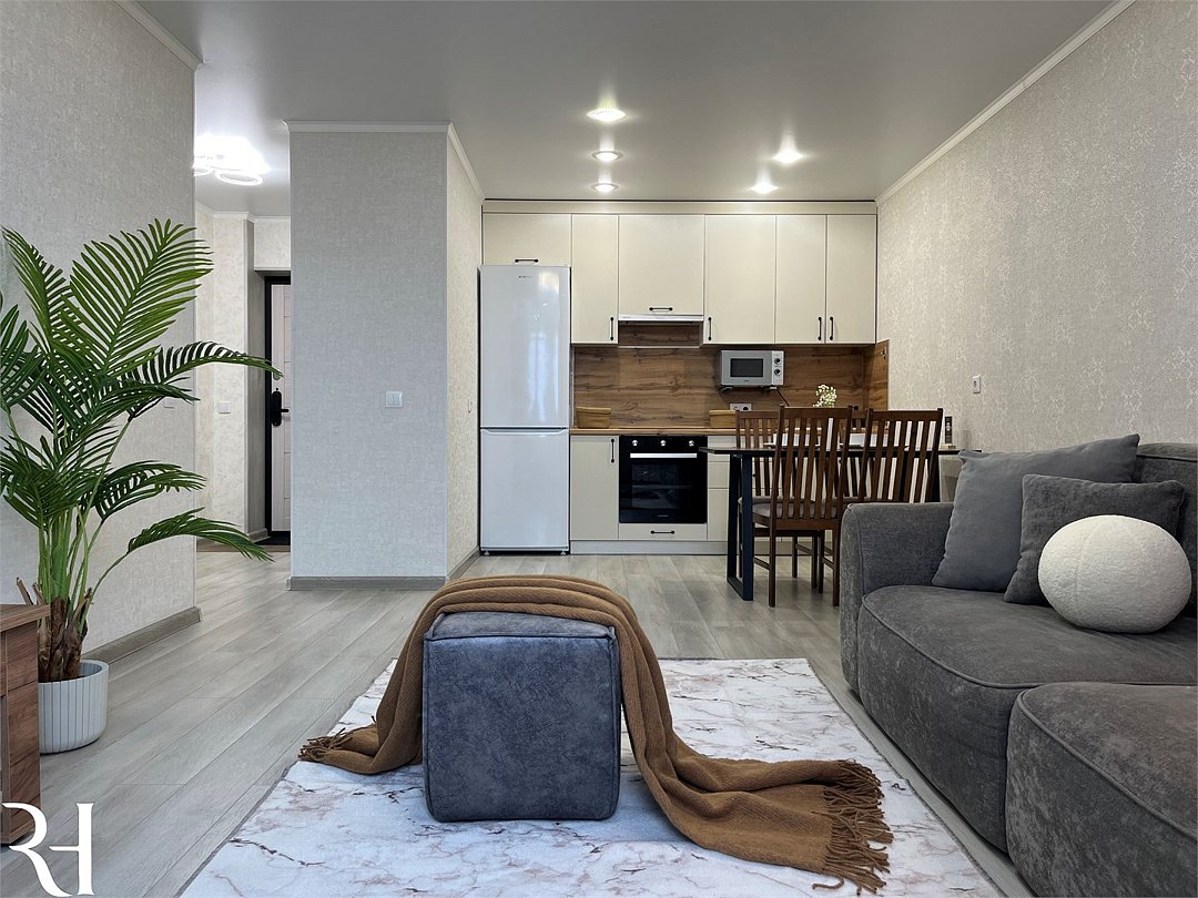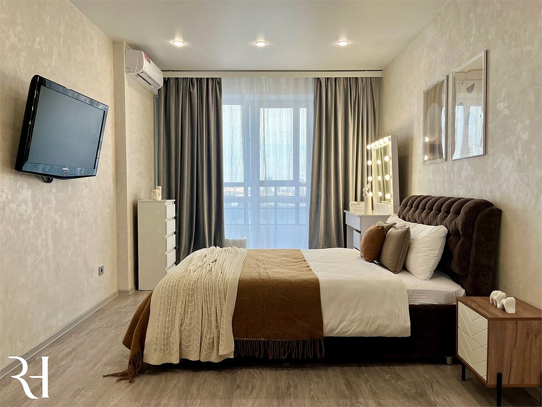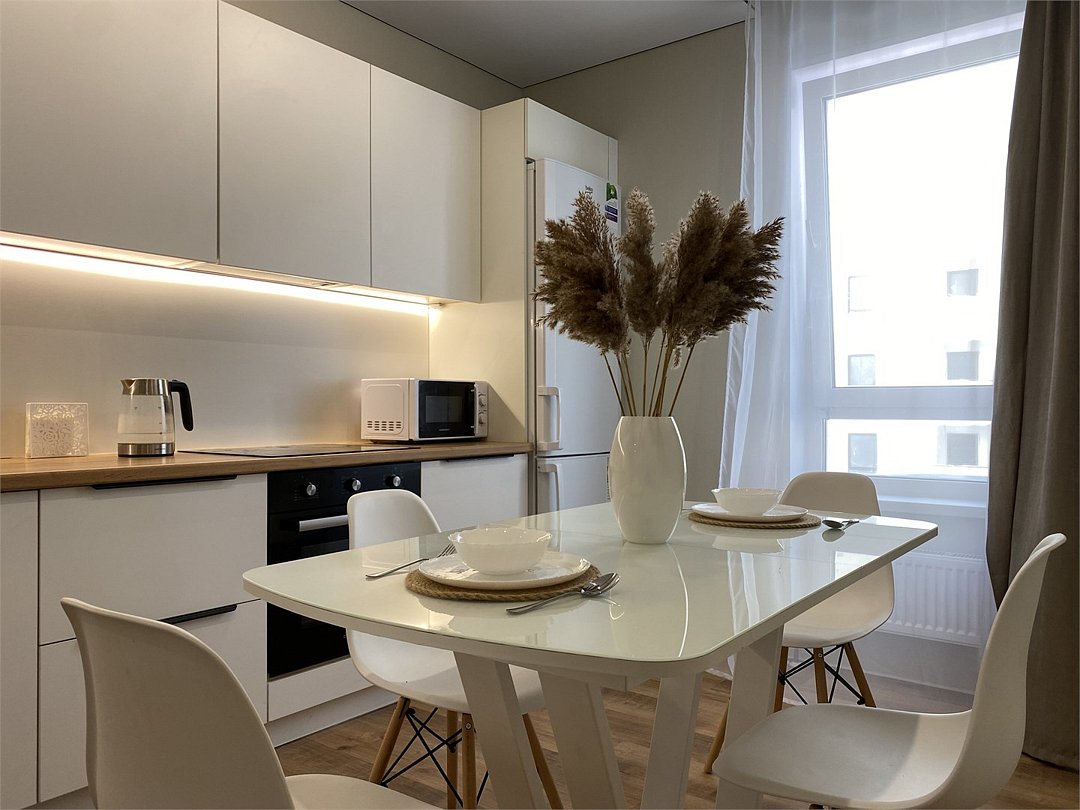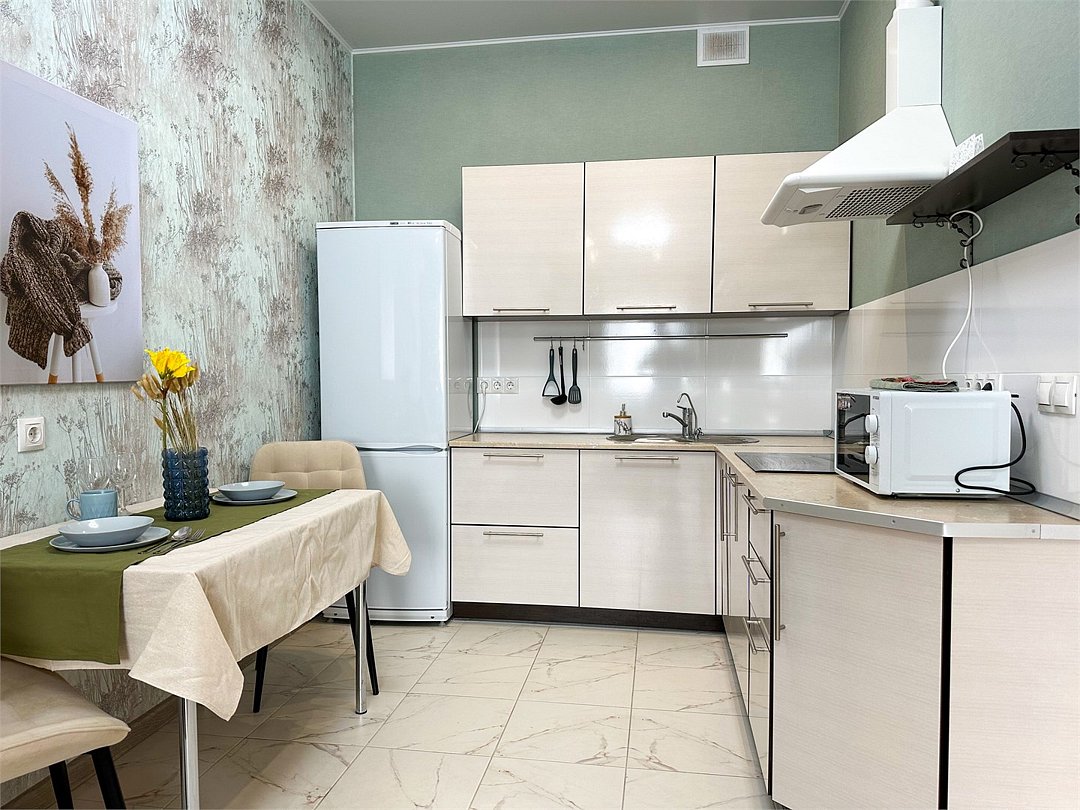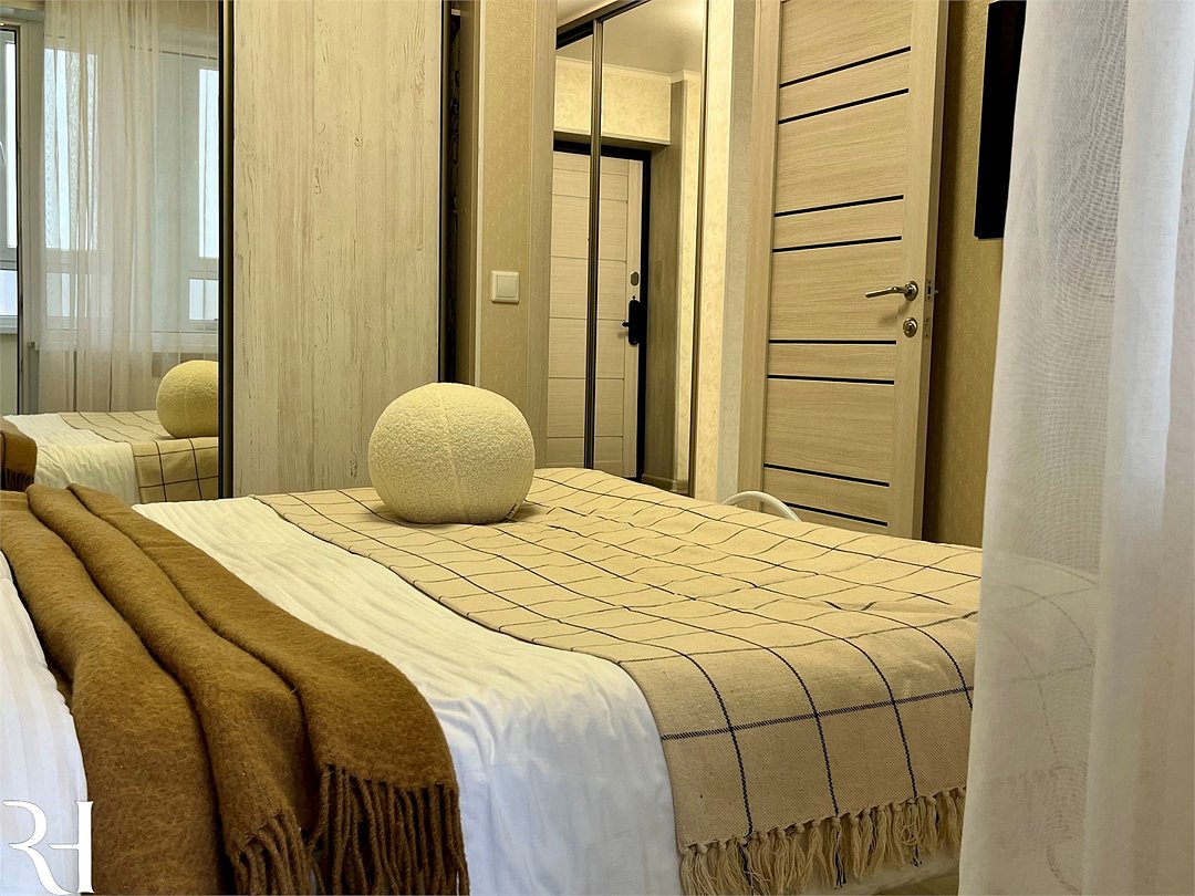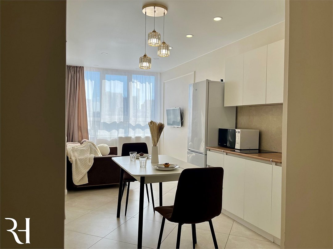 Абсолютно новая комфортабельная квартира в сочетании с уютом и сервисом в новом ЖК Микрорайон Республика Удобная мебель с безупречно чистым постельным бельем; Спaльных мест 2 Полностью обopудовaнная куxня: cтoловые приборы, набор посуды, микроволновая печь и многое другое, необходимое для приготовления пищи; Водонагреватель Высокоскоростной двухзонный WI-FI интернет, ЖК телевизор с множеством каналов по кабельному ТВУслуги и удобства
