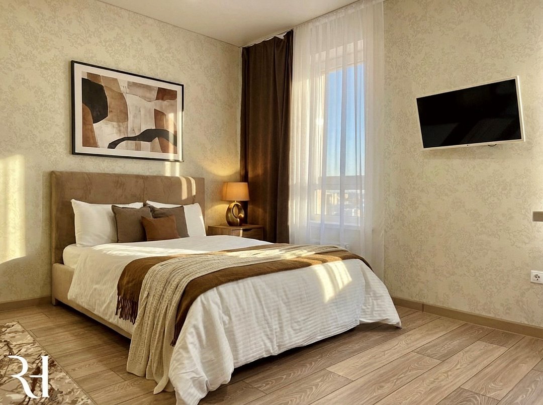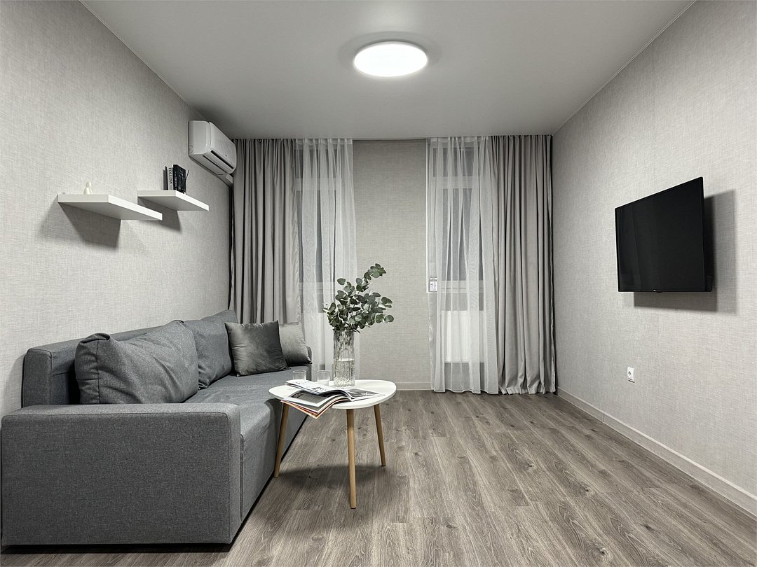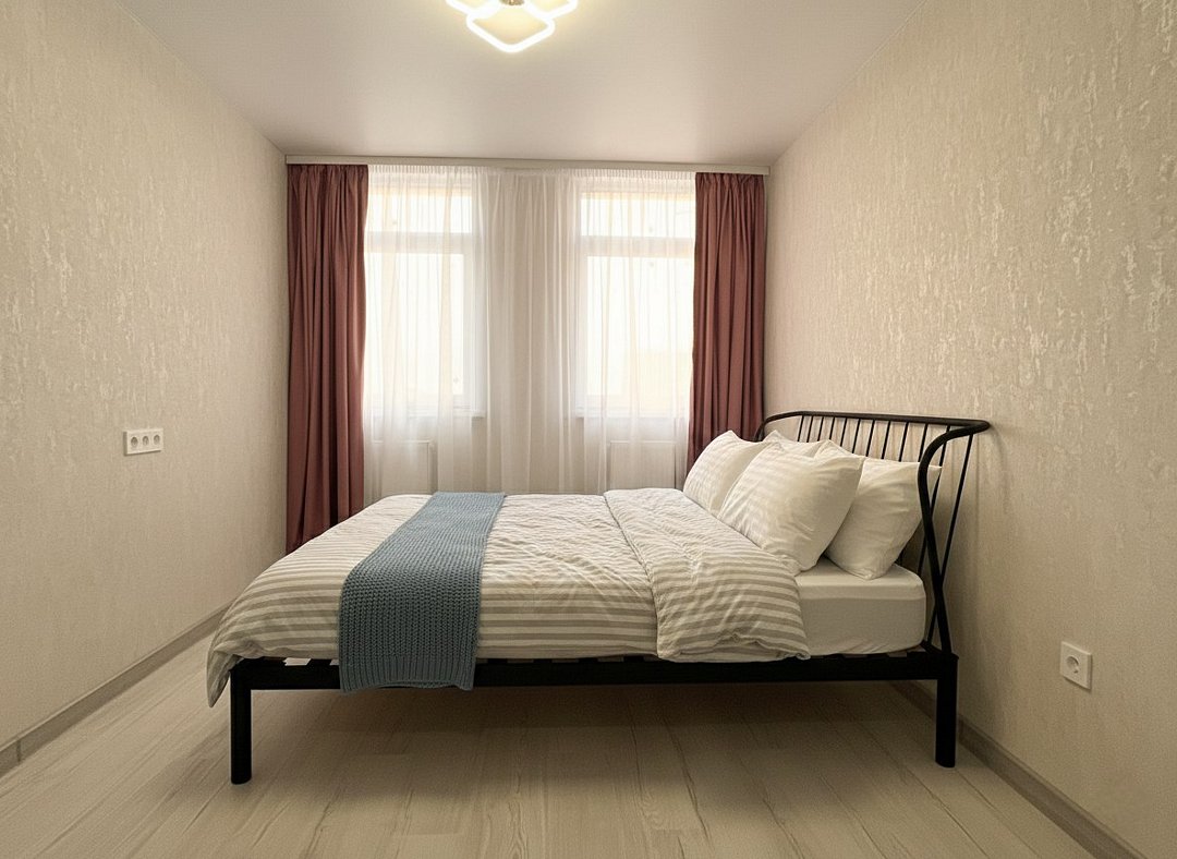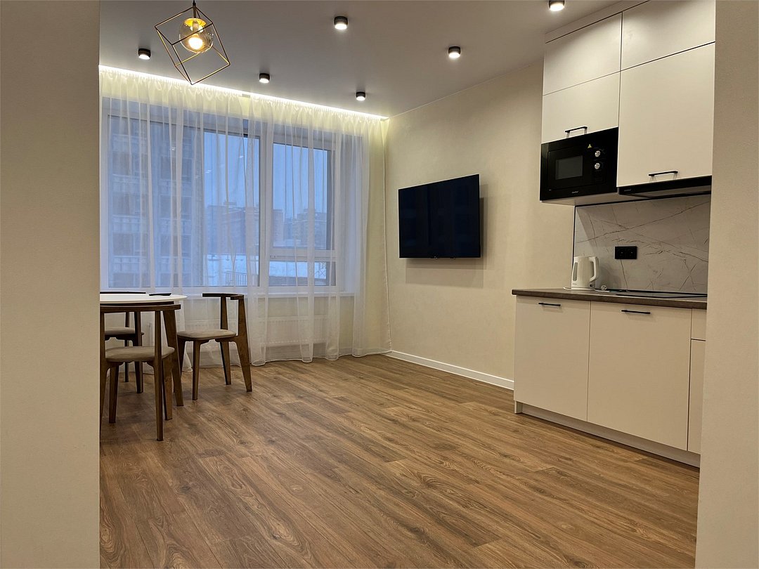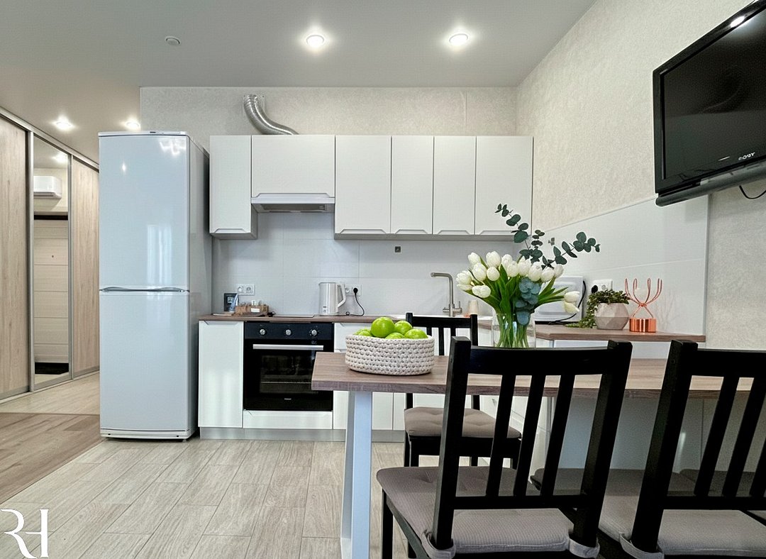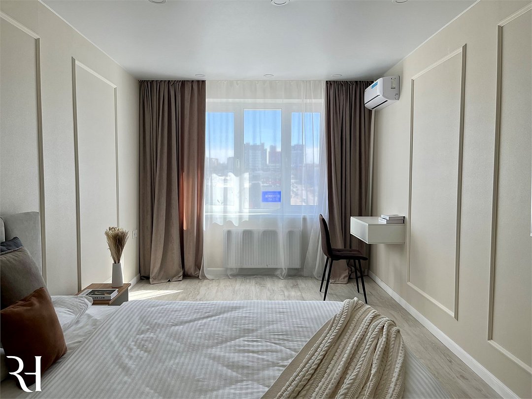 Абсолютно новая комфортабельная квартира в сочетании с уютом и сервисом в новом ЖК Микрорайон Республика Удобная мебель с безупречно чистым постельным бельем; Спaльных мест 2 Полностью обopудовaнная куxня: cтoловые приборы, набор посуды, микроволновая печь и многое другое, необходимое для приготовления пищи; Водонагреватель Высокоскоростной двухзонный WI-FI интернет, ЖК телевизор с множеством каналов по кабельному ТВУслуги и удобства