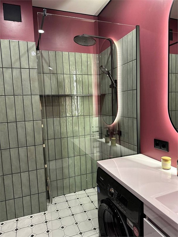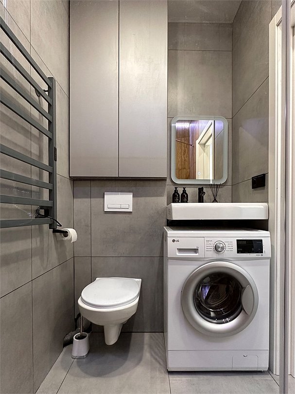 Wi-Fi, интернет, холодильник, кондиционер, фен, электронные замки, микроволновая печь, утюг, ванна, водонагреватель, банные принадлежности, банные полотенца, тапочки, косметические средства, двуспальная кровать, гладильная доска, стулья, обеденный стол, чайный набор, стиральная машина, чайник, унитаз, раковина, отопление, вид на город, столовые приборы, туалетные средства, сушилка для белья, телевизор с плоским экраном, кухонный уголок, номер для некурящих, вешалки-плечики, мыло, зеркало в полный ростВ апартаментах