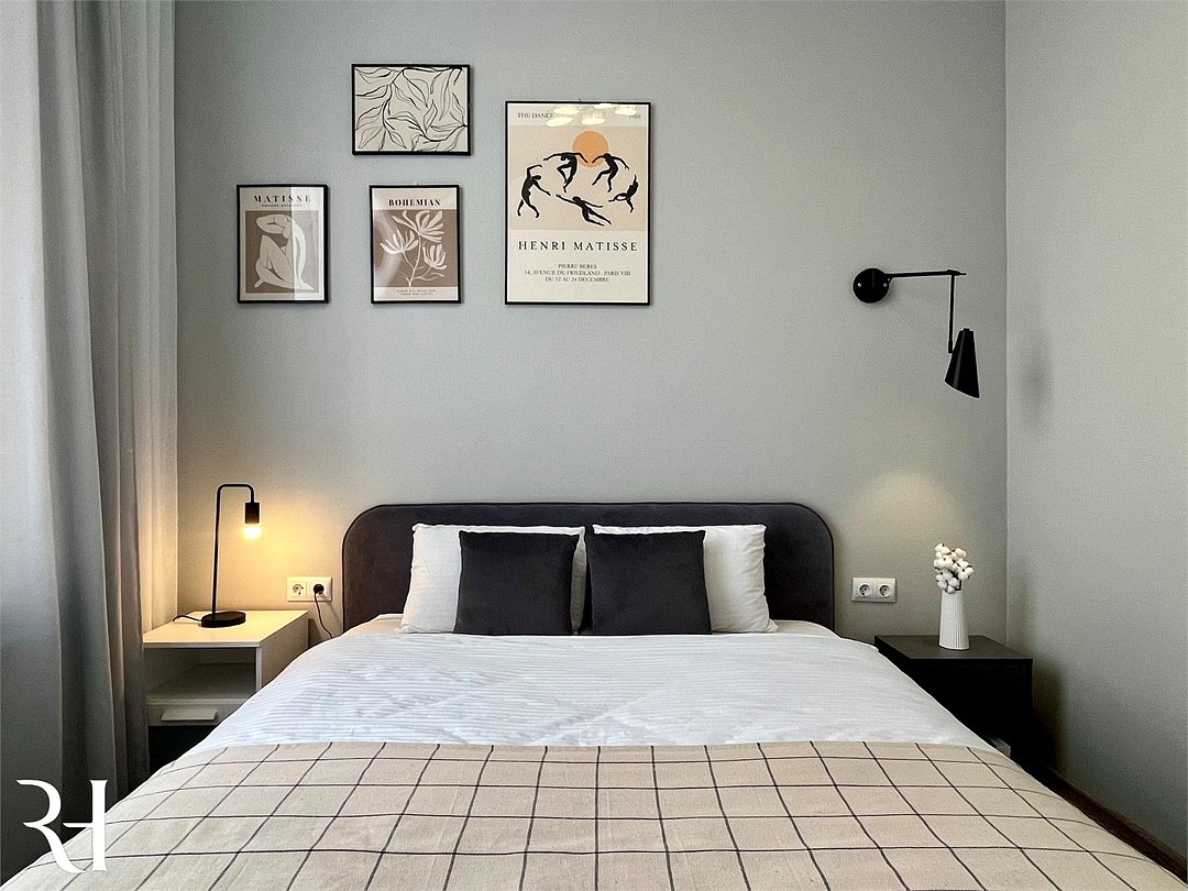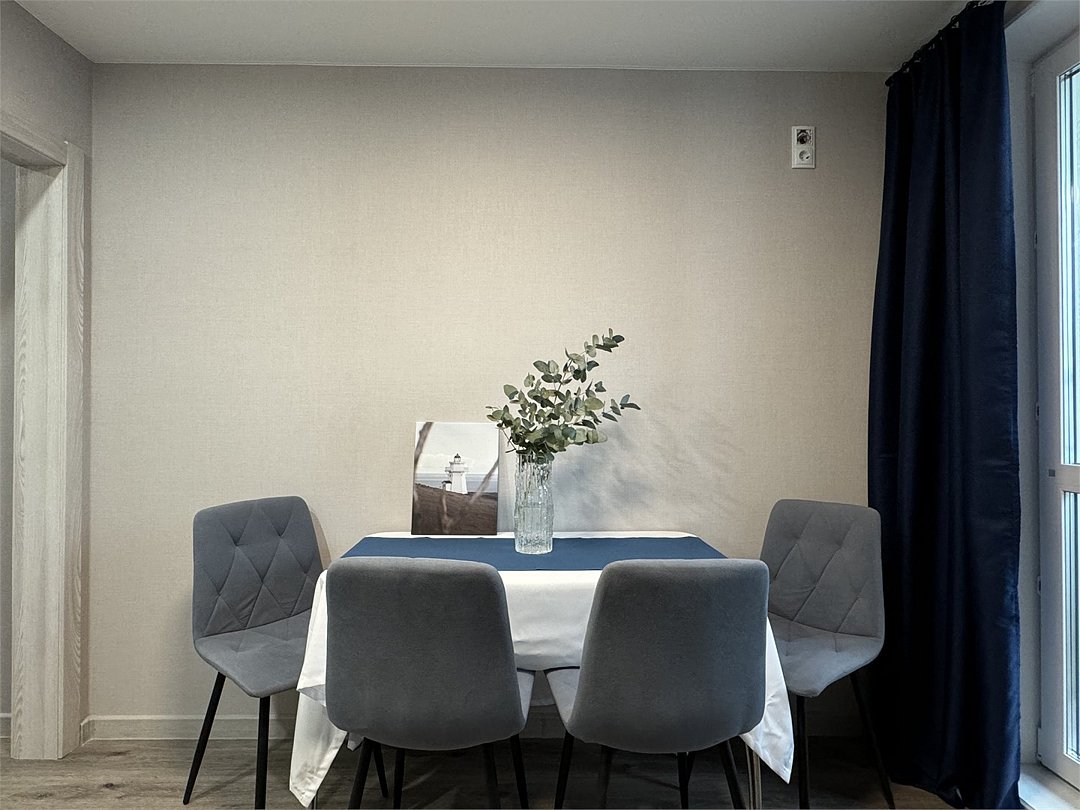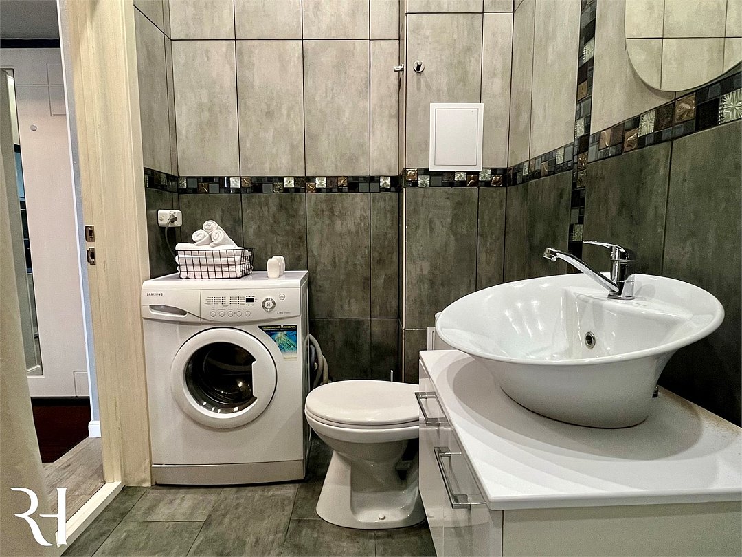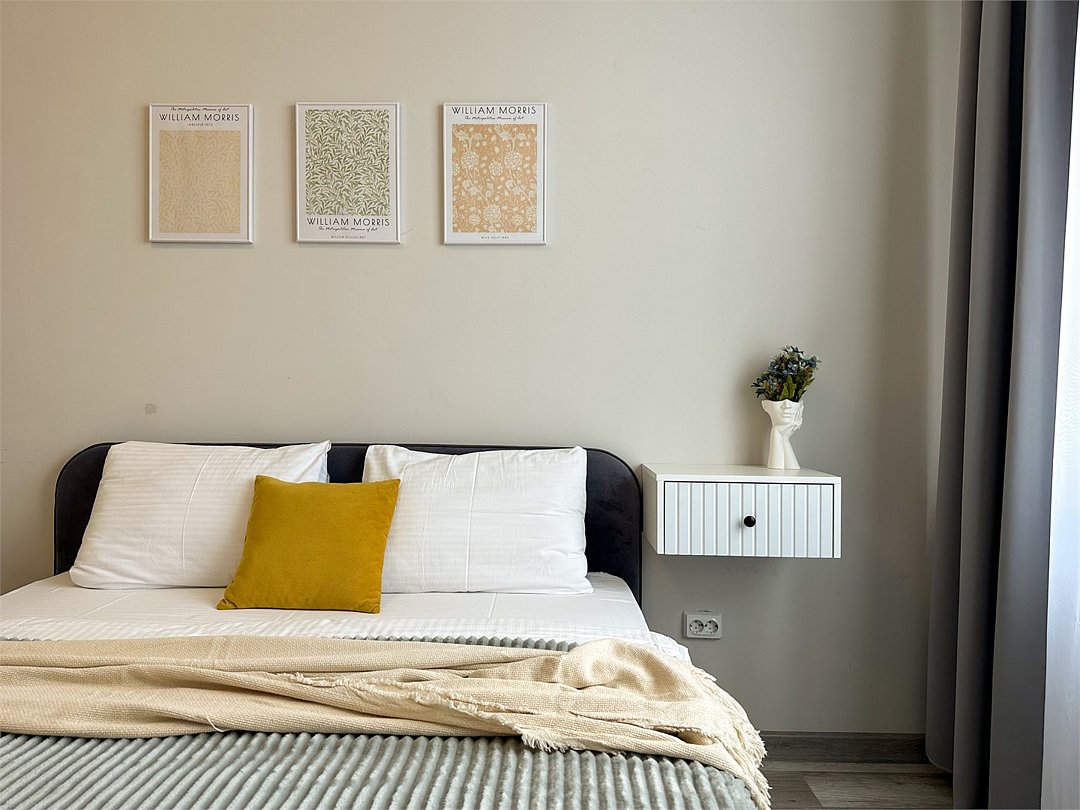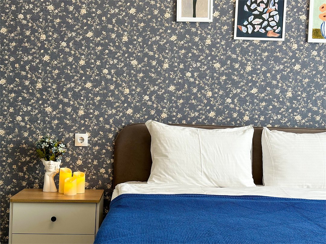 Wi-Fi, холодильник, кондиционер, фен, электронные замки, микроволновая печь, утюг, ванная комната, водонагреватель, банные полотенца, тапочки, гигиенические средства, косметические средства, балкон, двуспальная кровать, гладильная доска, стулья, шкаф для одежды, обеденный стол, зеркало, чайный набор, стиральная машина, чайник, унитаз, отопление, кухонная посуда, стаканы, столовые приборы, туалетный столик, туалетный столик, туалетные средства, туалет, сушилка для белья, телевизор с плоским экраном, кухонный уголок, номер для некурящих, вешалки-плечикиВ квартире