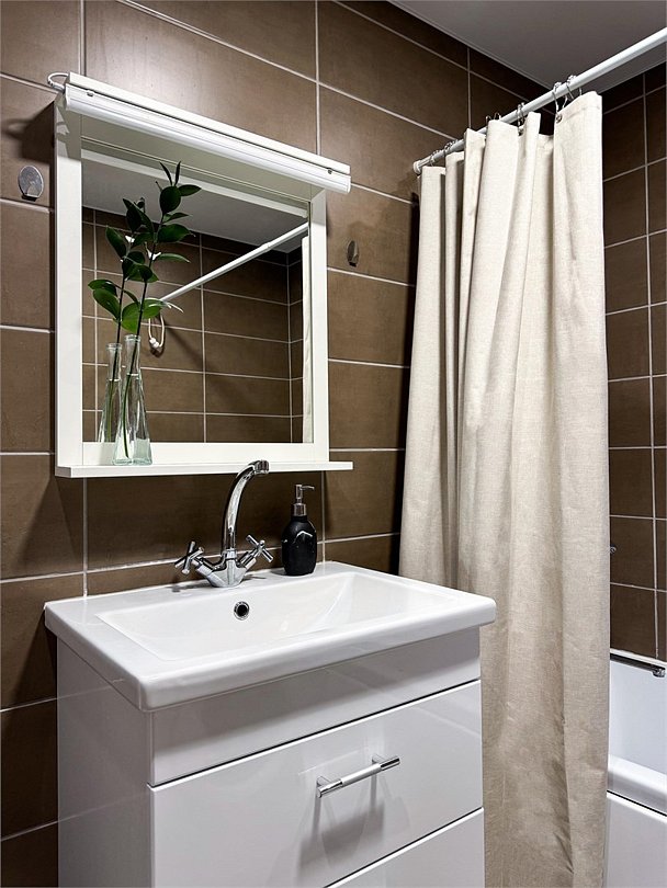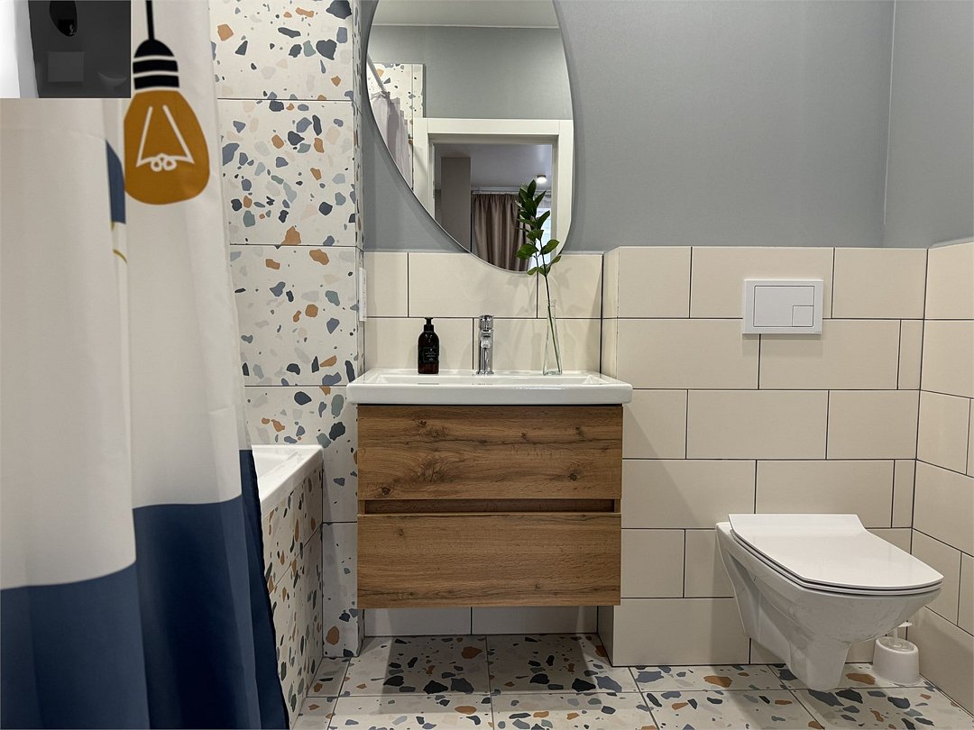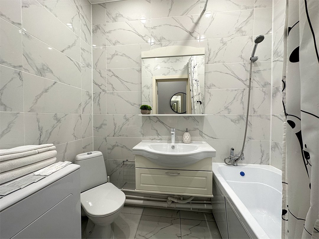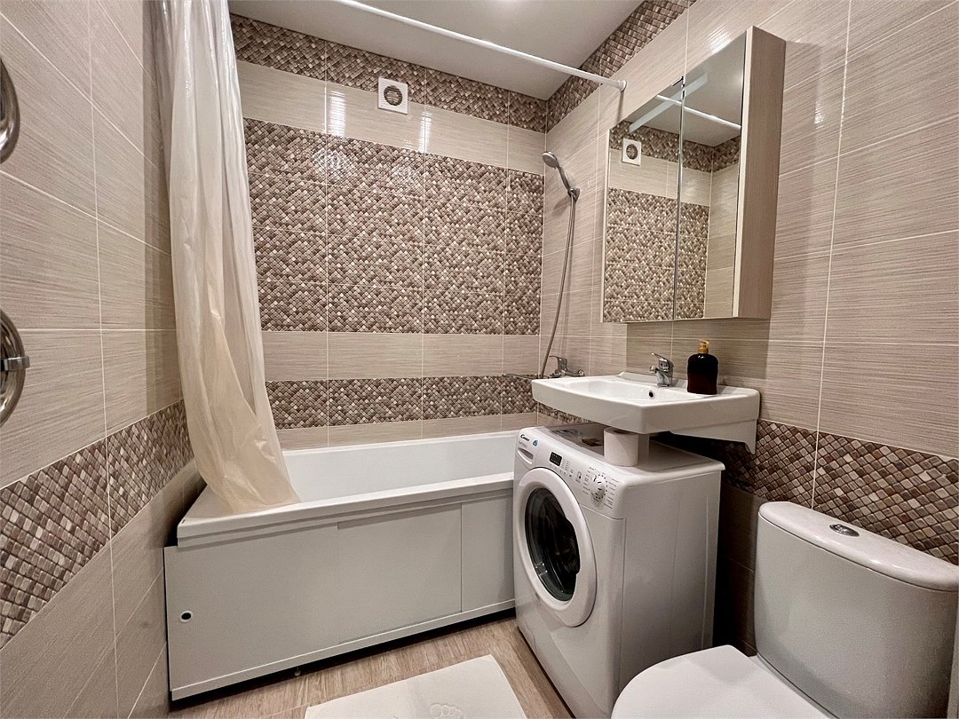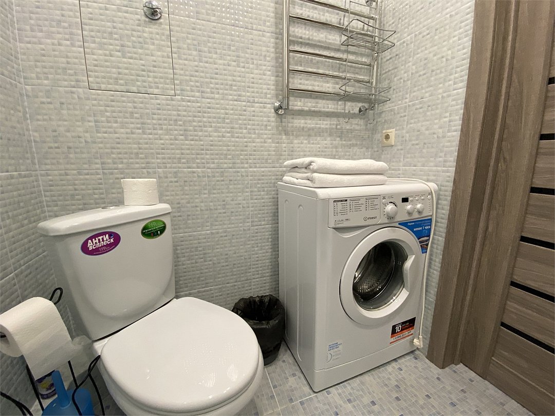 Wi-Fi, холодильник, фен, электронные замки, микроволновая печь, утюг, ванна, ванна или душевая кабина, банные полотенца, тапочки, двуспальная кровать, стулья, зеркало, чайный набор, набор посуды, стиральная машина, чайник, раковина, отопление, вид на город, вид во двор, кухонная посуда, стаканы, столовые приборы, стол, туалетные средства, туалет, сушилка для белья, телевизор с плоским экраном, мини-кухня, номер для некурящих, набор для приготовления чая и кофе, вешалки-плечики, мылоВ квартире