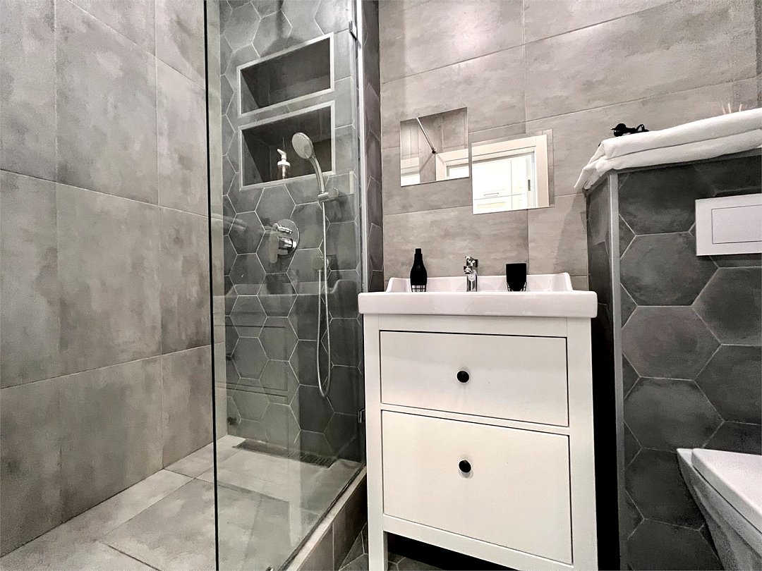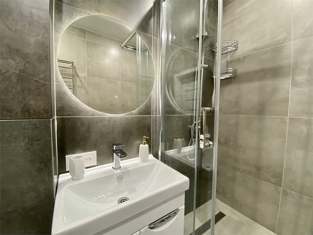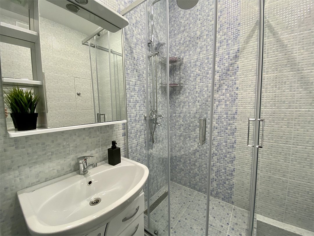 Wi-Fi, холодильник, кондиционер, фен, электронные замки, микроволновая печь, утюг, душевая кабина, водонагреватель, банные полотенца, тапочки, гигиенические средства, двуспальная кровать, гладильная доска, диван, стулья, шкаф для одежды, вешалки, чайный набор, набор посуды, стиральная машина, чайник, унитаз, отопление, вид на город, столовые приборы, стол, туалетные средства, сушилка для белья, диван-кровать, телевизор с плоским экраном, духовка, мыло, зеркало в полный ростВ квартире