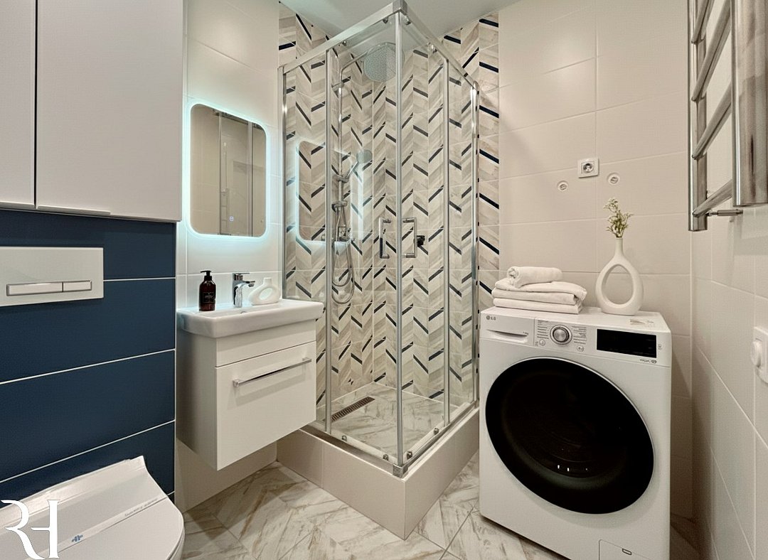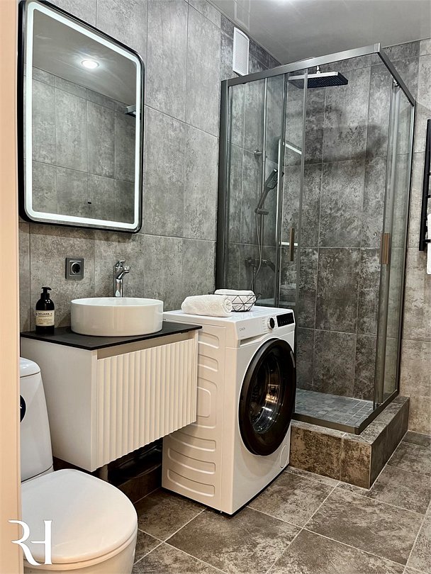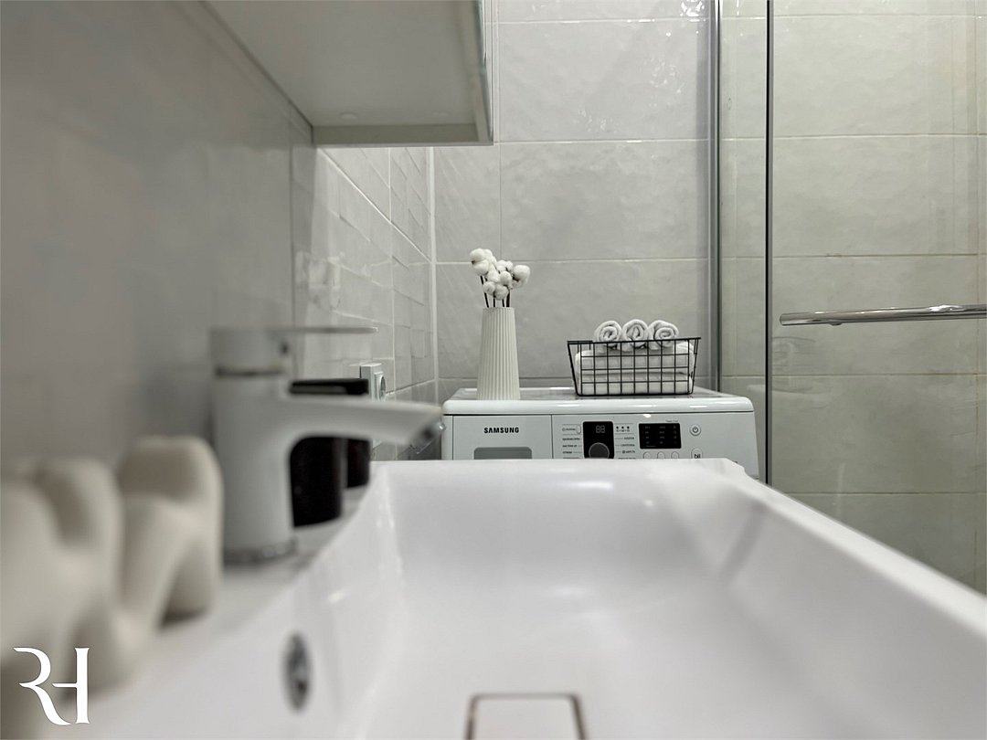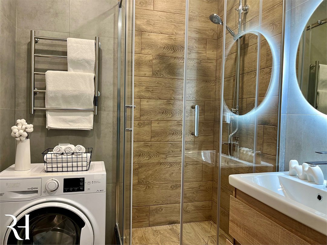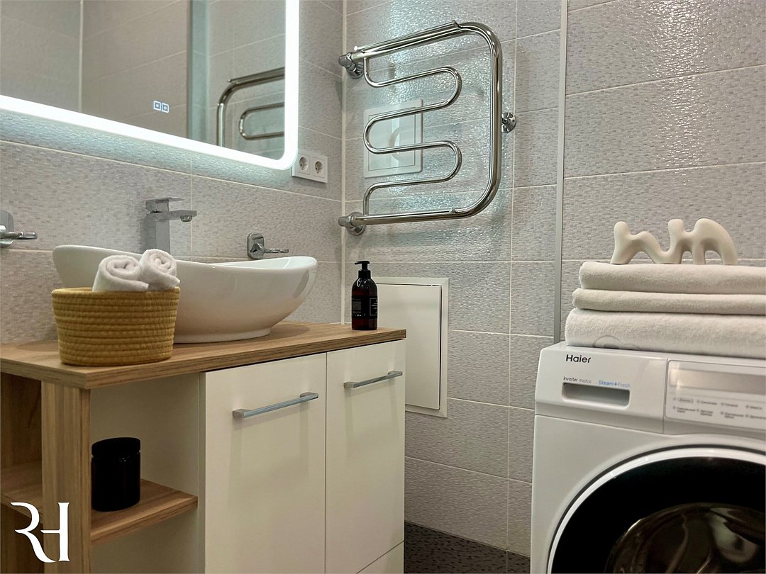 Wi-Fi, интернет, холодильник, фен, электронные замки, плита для приготовления пищи, микроволновая печь, утюг, ванна, водонагреватель, банные полотенца, тапочки, косметические средства, двуспальная кровать, гладильная доска, шкаф для одежды, обеденный стол, зеркало, мебельный гарнитур, кухня, чайный набор, набор посуды, стиральная машина, чайник, унитаз, раковина, отопление, кухонная посуда, столовые приборы, стул, туалетные средства, сушилка для белья, телевизор с плоским экраном, телевизор со Smart TV, вешалки-плечики, мылоВ апартаментах