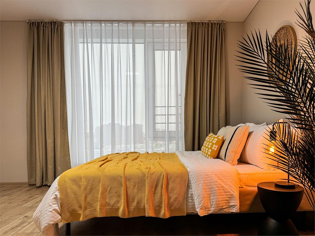 Абсолютно новая комфортабельная квартира в сочетании с уютом и сервисом в элитном жилом комплексе «Ботаника»; Удобная мебель с безупречно чистым постельным бельем; Спaльных мест 2+1 Полностью обopудовaнная куxня: cтoловые приборы, набор посуды, микроволновая печь и многое другое, необходимое для приготовления пищи; Водонагреватель Высокоскоростной двухзонный WI-FI интернет, ЖК телевизор с множеством каналов по кабельному ТВУслуги и удобства