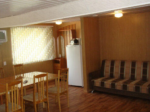 Для проживания отдыхающим предлагаются полностью обустроенные гостевые домики, где найдется не только отдельная ванная, но и кухня с бытовой техникой. Рядом с домиками есть беседки с мангалом. Некоторые из домиков имеют свою сауну. Помимо личных гостевых саун, на базе предусмотрен банный комплекс.