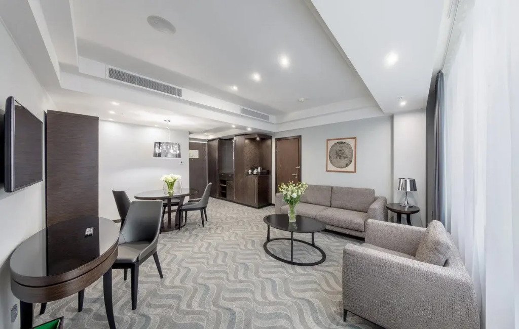 Дополнительно: прачечная, банкомат, гладильные услуги, пресса и консьерж.