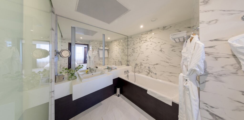 В номере вас будут ждать телевизор и халат. Оснащение зависит от выбранной категории номера.