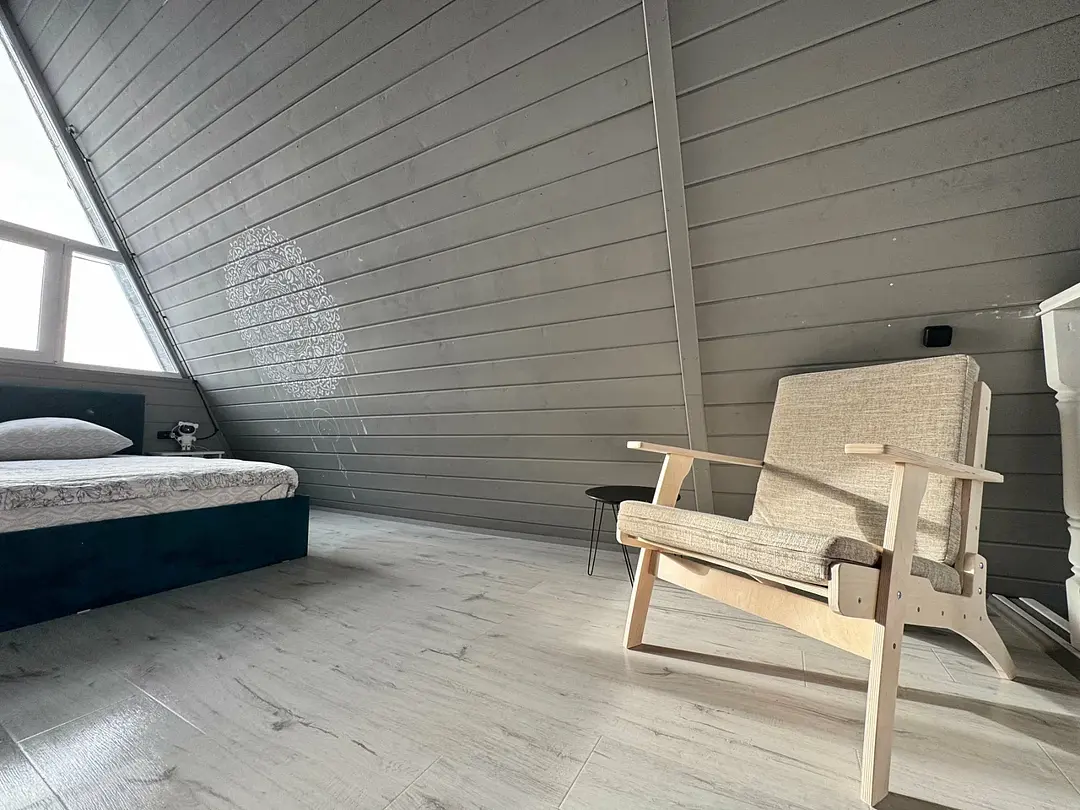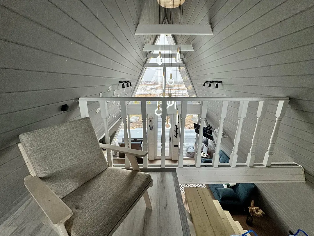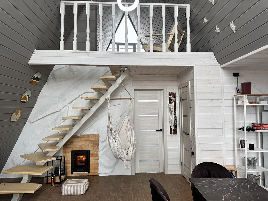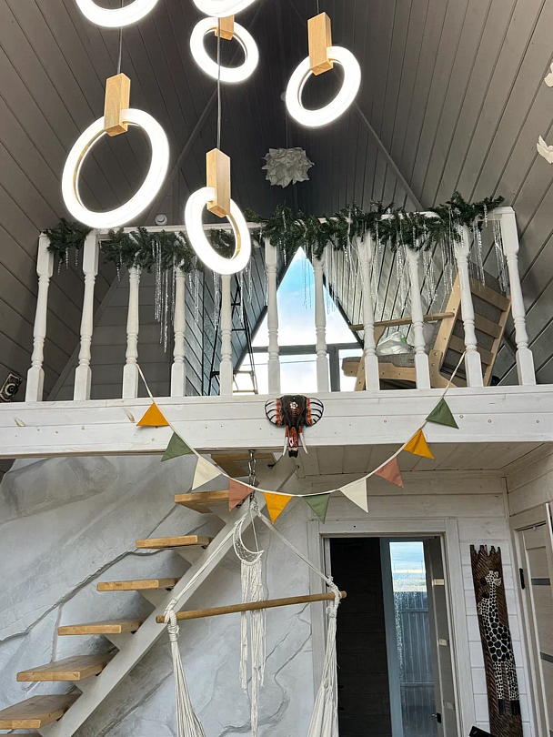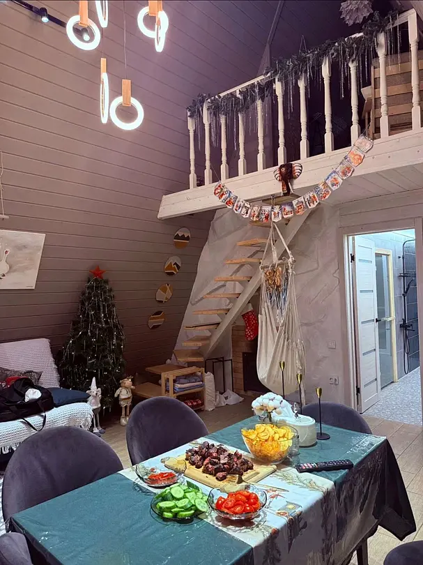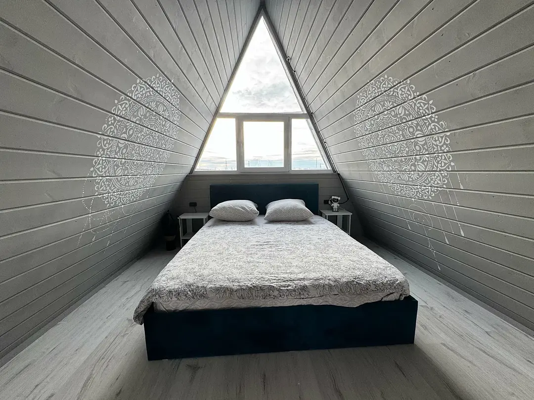 Вас будет ждать уютный двухэтажный А-фрейм вместимостью до 8 человек, полностью обустроенный всем необходимым для комфортного проживания и проведения досуга. В доме установлена удобная мебель, есть телевизор, игровая приставка, кухня и санузел.