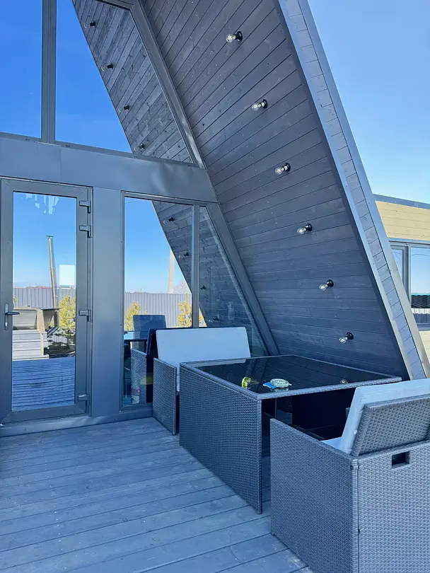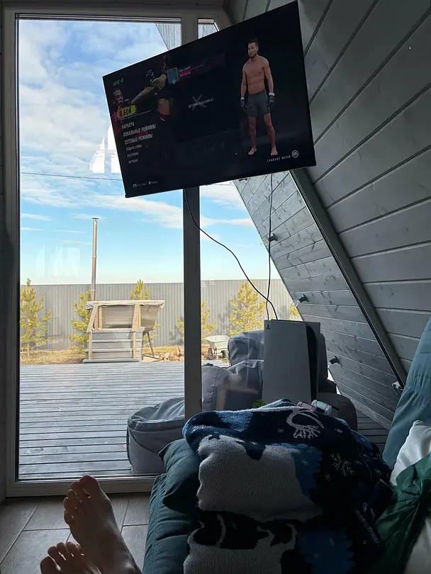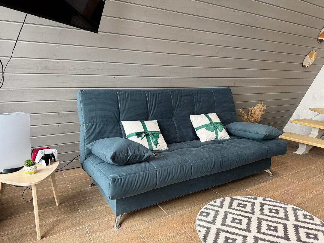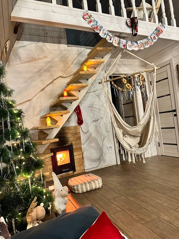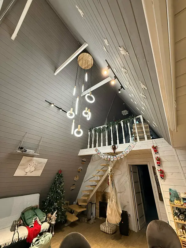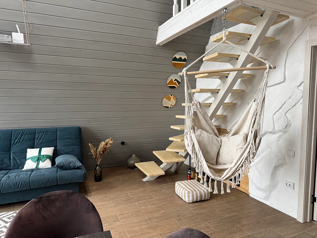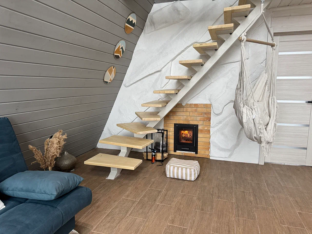 Вас будет ждать уютный двухэтажный А-фрейм вместимостью до 8 человек, полностью обустроенный всем необходимым для комфортного проживания и проведения досуга. В доме установлена удобная мебель, есть телевизор, игровая приставка, кухня и санузел.