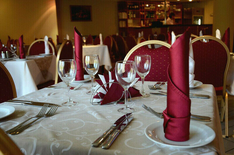 Вместимость: 100 мест. В меню блюда европейской и русской кухни, а также несколько видов пиццы. Есть вегетарианские блюда.