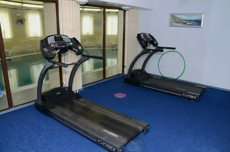 Тренажерный зал с современным оборудованием (беговые дорожки). Стоимость — 100 ₽/час.