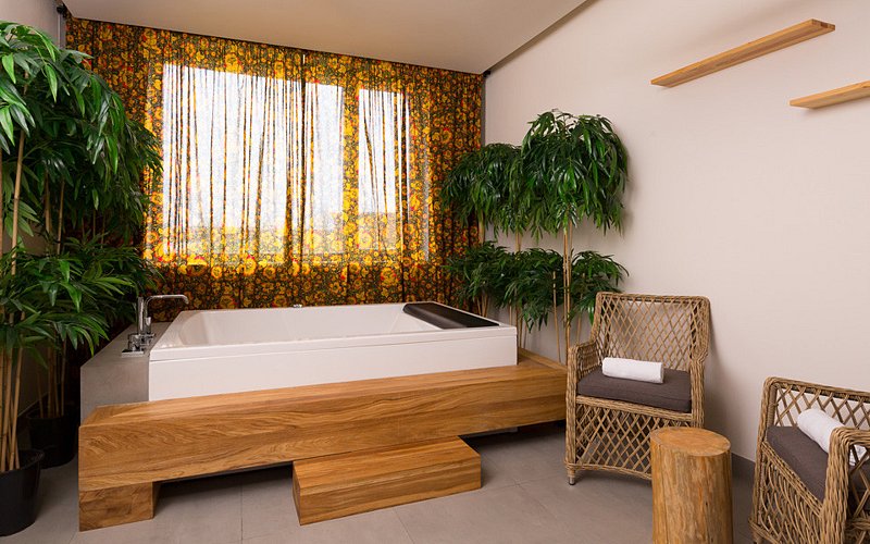 Сауна расположена в помещении рядом с бассейном. Включает 2 парилки и зону отдыха. В сауну выдаются простыни и полотенца. Вместимость: до 8 человек.