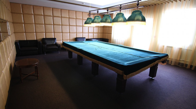 К услугам гостей просторный бильярдный зал (русский бильярд), смежно-расположенный с каминным залом на 25 посадочных мест.