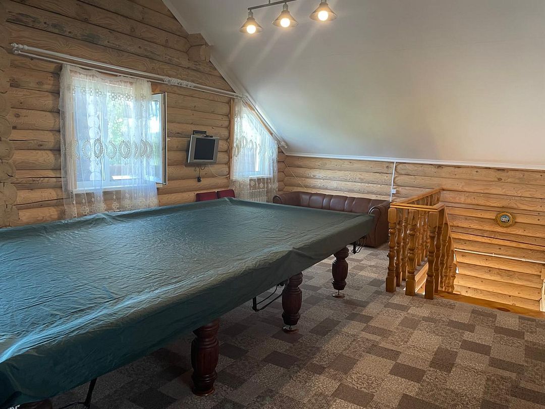На втором этаже расположен американский бильярд, спальная комната с 4 односпальными кроватями и выход на балкон.