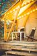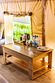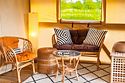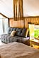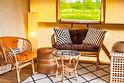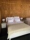 Внутри бунгало: двуспальная кровать 160х200, мягкий двухместный диван, а также вместительный комод, большая вешалка, этажерка, чайный столик, стулья, прикроватные тумбочки, зеркало, напольный торшер и множество красивых светильников.