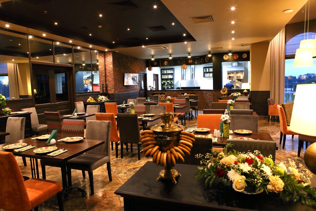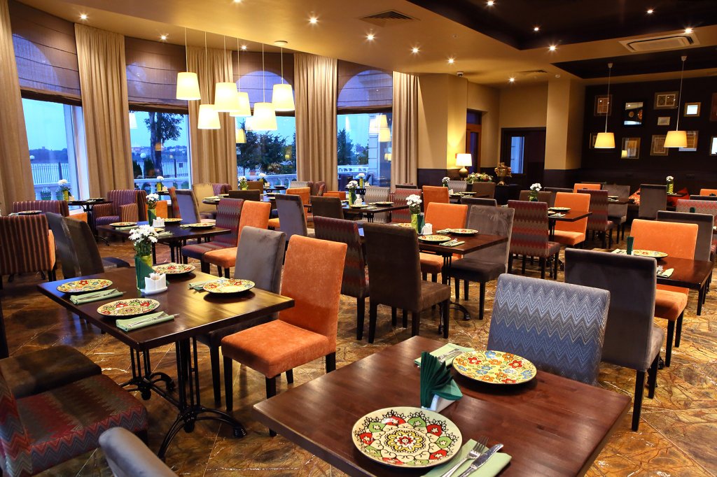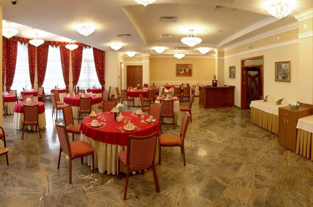 В отеле для гостей работает ресторан «Мон Плезир», где подают блюда русской и европейской кухни, а также блюда с открытого огня. В лобби-баре «Галерея» можно заказать напитки и десерты.