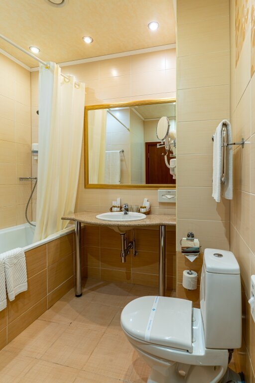 Среди удобств в номерах: телевизор с плоским экраном, фен и сейф в каждом номере. Оснащение зависит от выбранной категории номера.