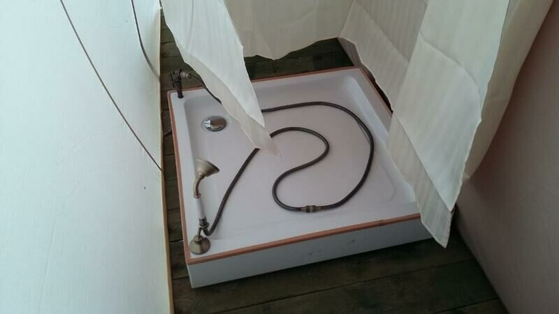 - душ с горячей водой и раковина находятся внутри люкс-шатра