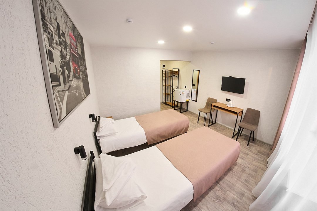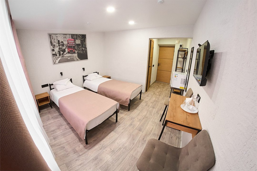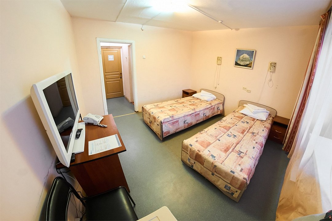 Отремонтированный номер с новой мебелью, холодильником, двумя односпальными кроватями.Услуги и удобства