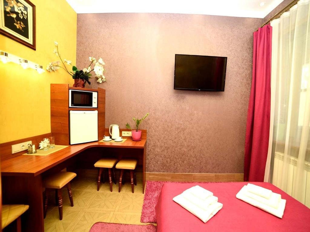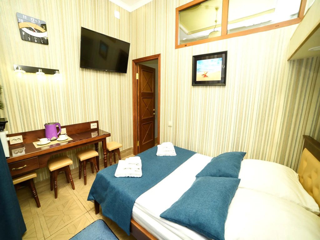 В номере вас будут ждать телевизор и халат. Оснащение зависит от выбранной категории номера.