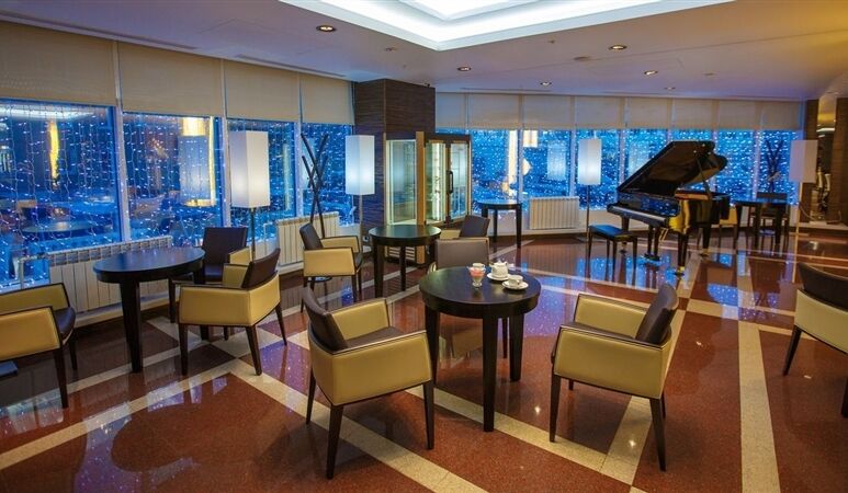 Уютный классический бар, расположенный в холле гостиницы на первом этаже, создает благоприятную обстановку для приятного общения.