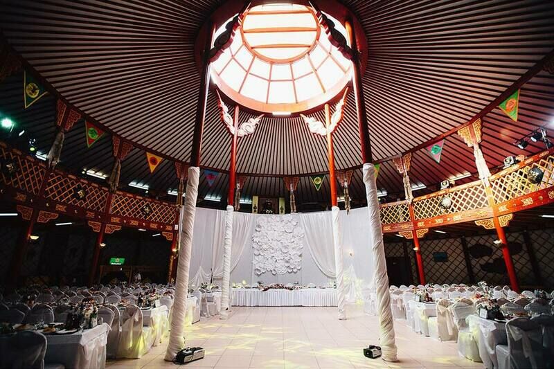 Улан-Удэ славится сохранением бурятских традиций. Дорогого гостя всегда встречали в самой дорогой и нарядной юрте. Не отказывайте посетителям своего мероприятия в этом удовольствии. В Вашем распоряжении будет два уровня и большие беседки на внешней площадке, где можно провести отличный фуршетный стол, зарегистрировать молодожёнов на выезде или устроить лучший танцевальный вечер. Оформление выполнено в этническом стиле, имеется большое количество резьбы по дереву, традиционной чеканки и вышивки.