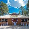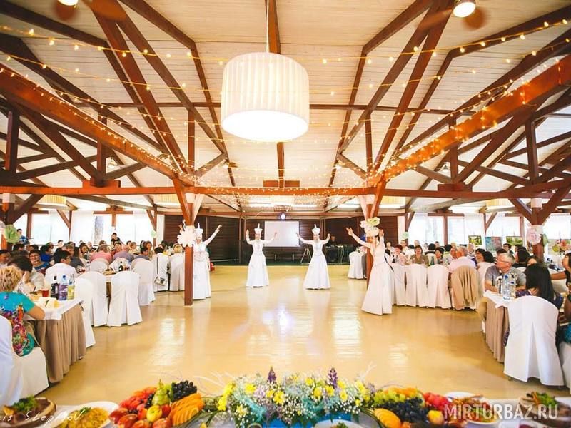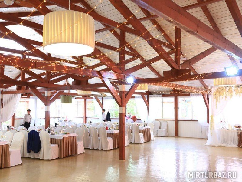Это уютное помещение для приёма большого количества гостей находится непосредственно в лесу. Непринужденная и конфиденциальная атмосфера обязательно расположит всех участников вечеринки к хорошему настроению и погружению в общение. Сосны надежно закрывают свет, что избавляет от летней жары. Панорамные окна в пол позволят насладиться красотой хвойного леса. На входе установлена большая беседка и площадка для регистрации молодожёнов на выезде. Имеется сцена для организации выступлений артистов и развлекательных программ.