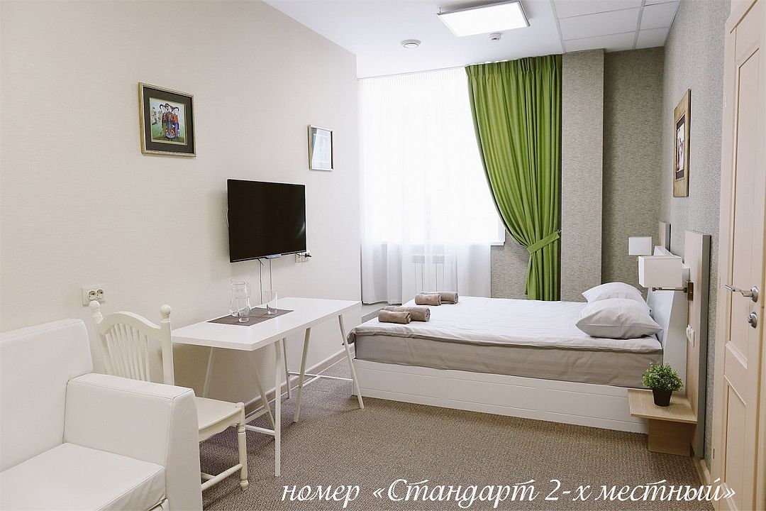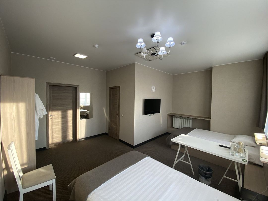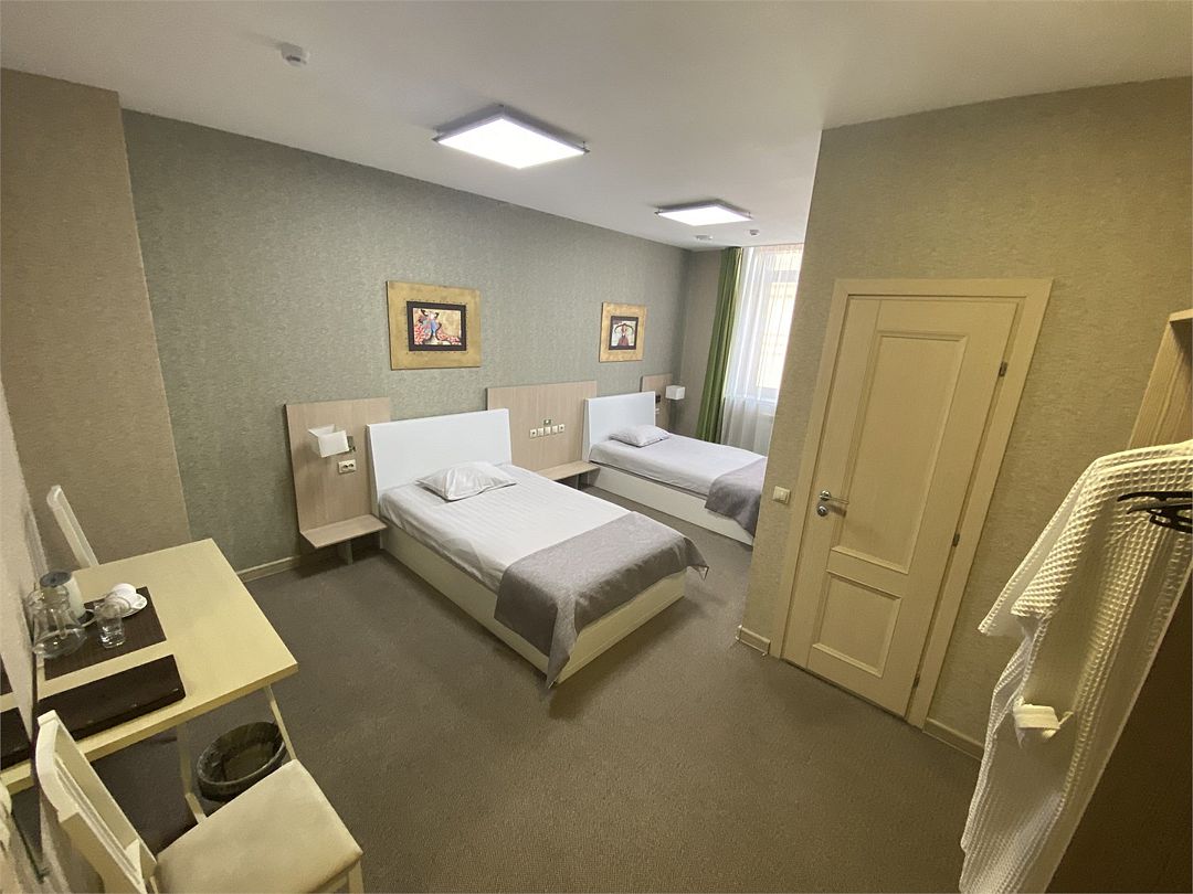 Комфортабельный современный двухместный номер с 2-мя раздельными кроватями, прихожей , ванной комнатой и выделенной рабочей зоной. Оснащен телевизором с кабельными каналами, бесплатный wi-fi, фен, туалетные принадлежности, халат, тапочки.