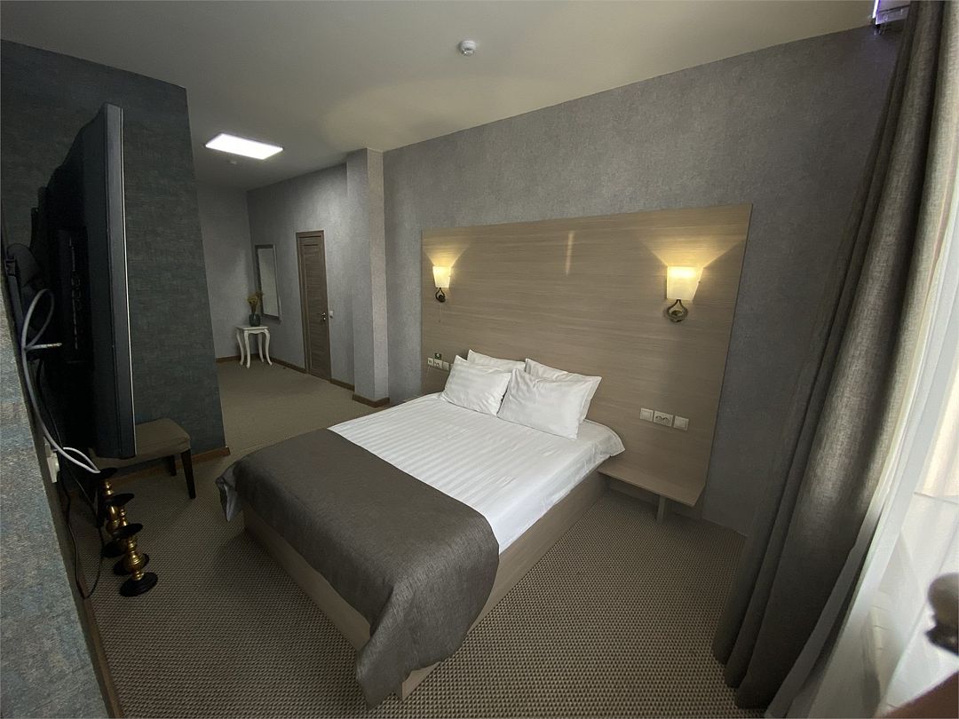 Комфортабельный современный двухместный номер с 1 кроватью, прихожей , ванной комнатой и выделенной рабочей зоной. Оснащен телевизором с кабельными каналами, бесплатный wi-fi, фен, туалетные принадлежности, халат, тапочки.