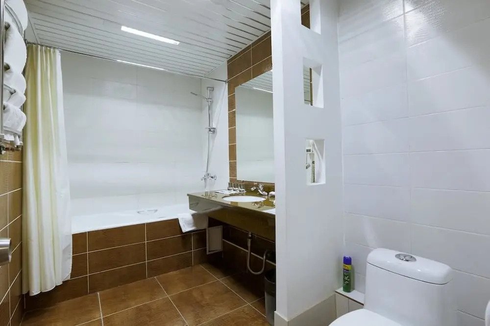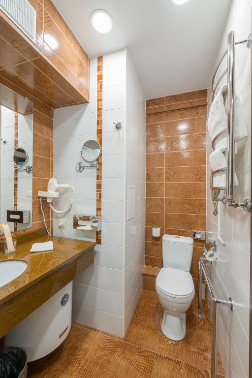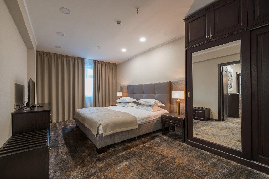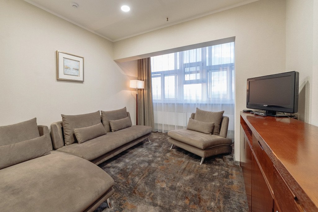 Номер уютно обставлен и оснащён необходимым, чтобы отдохнуть после долгого и насыщенного дня. Имеются телевизор и халат. Перечисленные услуги есть не во всех номерах.