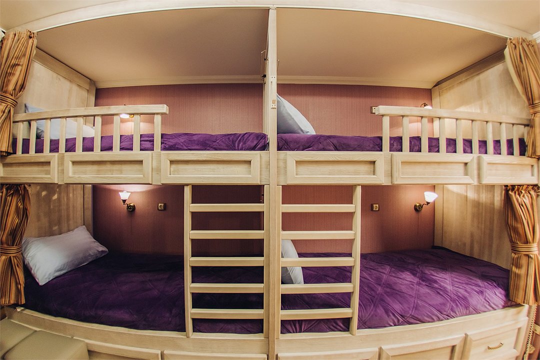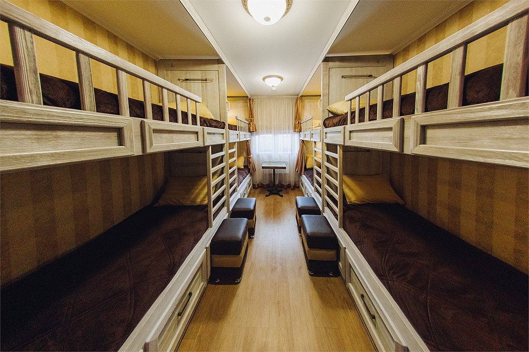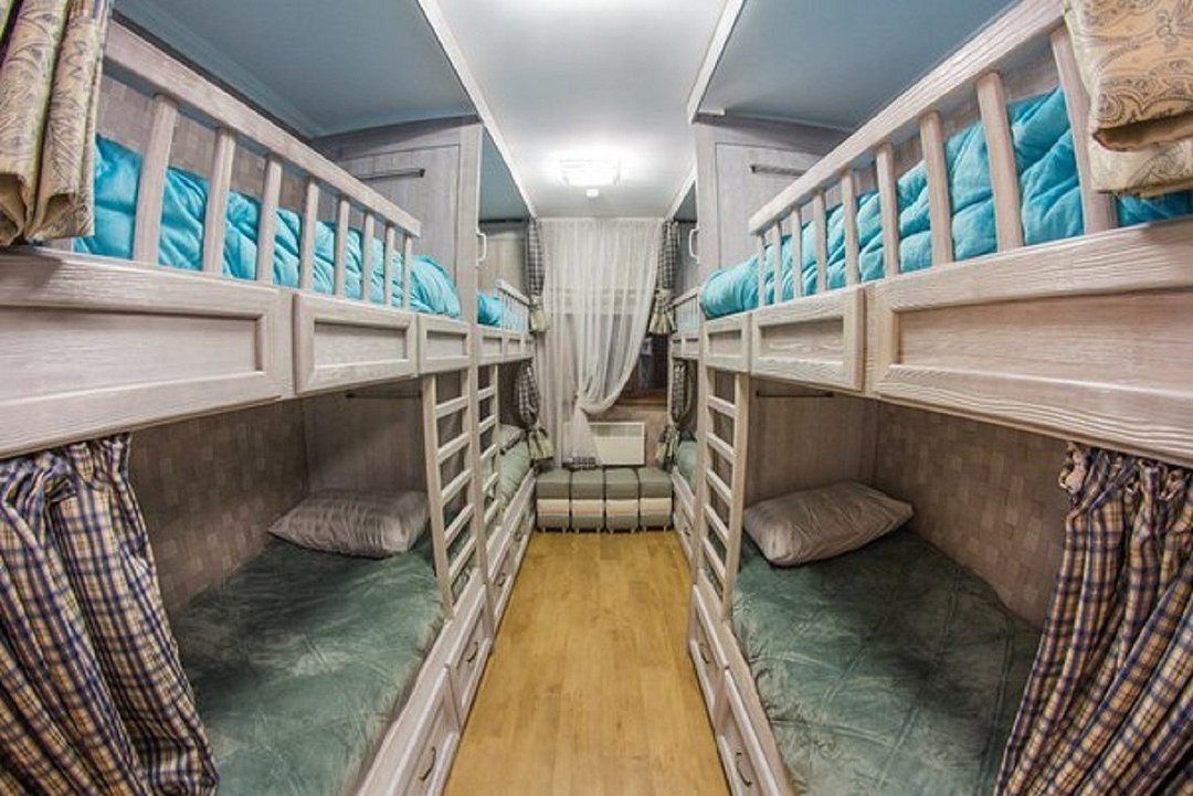Предоставляем Вам на обозрение наш хостел. Во всех хостелах имеются 8 одноместных кроватей, личная мини-лампа, задвигающиеся шторки, розетки, телевизор, отсеки для багажа и вещей, маленькие пуфики. Также в распоряжении жителей хостела находятся наши общие души и туалеты, отдельно для мужчин, отдельно для женщин, и отдельная кухня.Услуги и удобства
