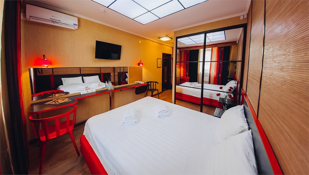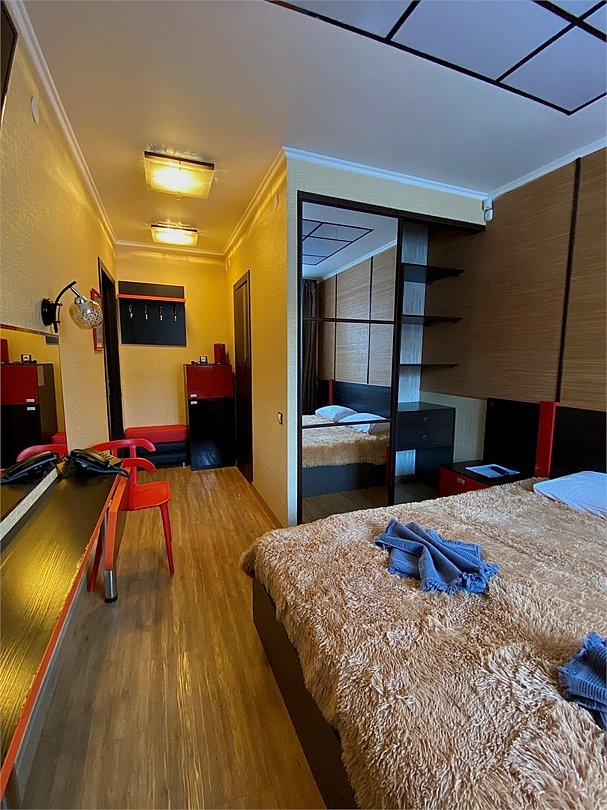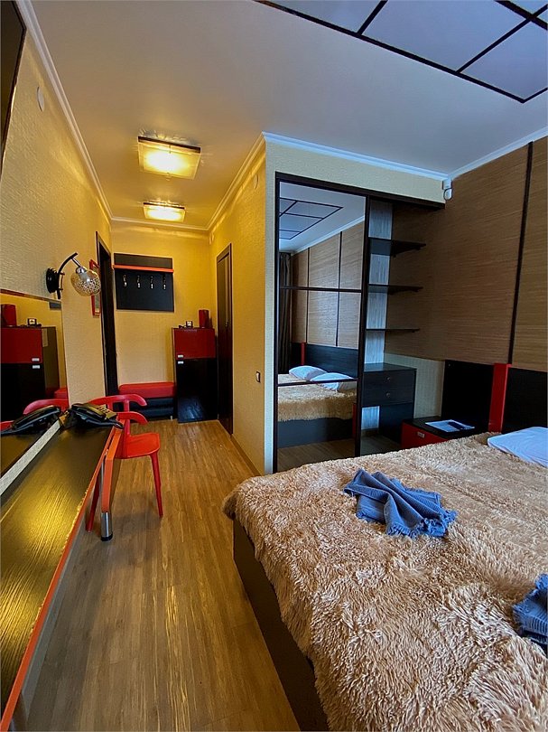 Номер "Япония" – это дань восточной гармонии и сдержанности, яркости природы, а также минимализму и строгой геометрии. Покорит своей гармонией и изяществом интерьера любого гостя.Услуги и удобства