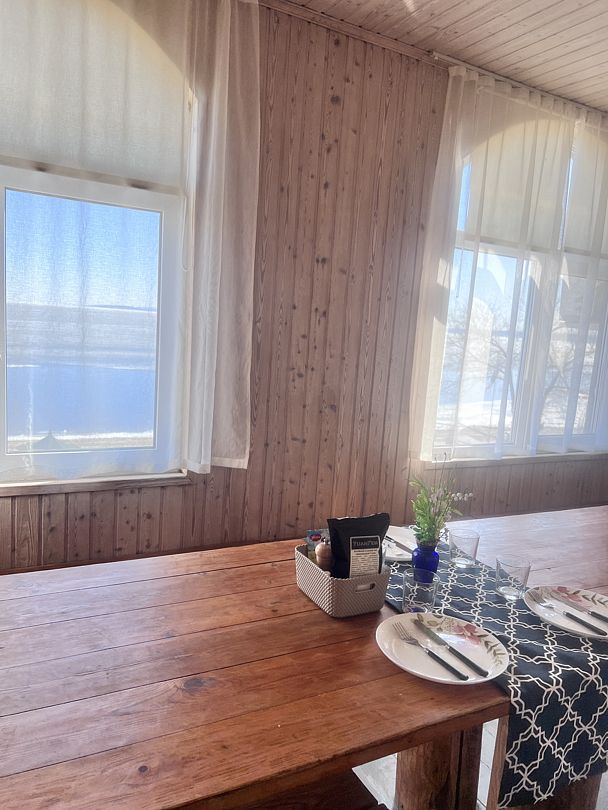 Комфортный тёплый коттедж с просторной столовой и уютной спальней на 7 спальных мест и до 15 человек дневного пребывания. Расположен на турбазе Адмирал. 7 минут езды от центра города. Дом отапливается. Условия аренды: