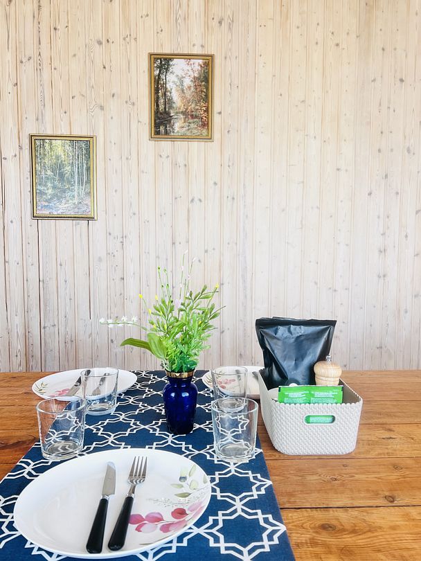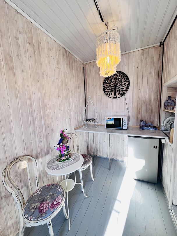 Просторная столовая, зал, спальня и санузел с раковиной и унитазом. Душ с отдельного входа в дом. В доме есть кондиционер, большой телевизор, холодильник, свч, чайник, мультиварка , электрическая плитка, тостер, посуда, столовые приборы. Гостям предоставляется постельное белье, полотенца, гель для душа .
